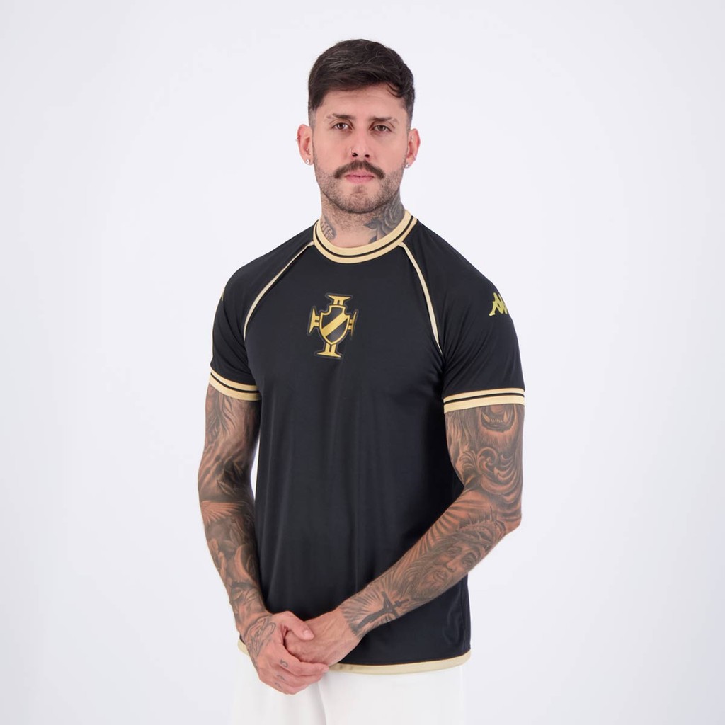 Camisa Kappa Vasco Supporter Shore Preta e Dourada