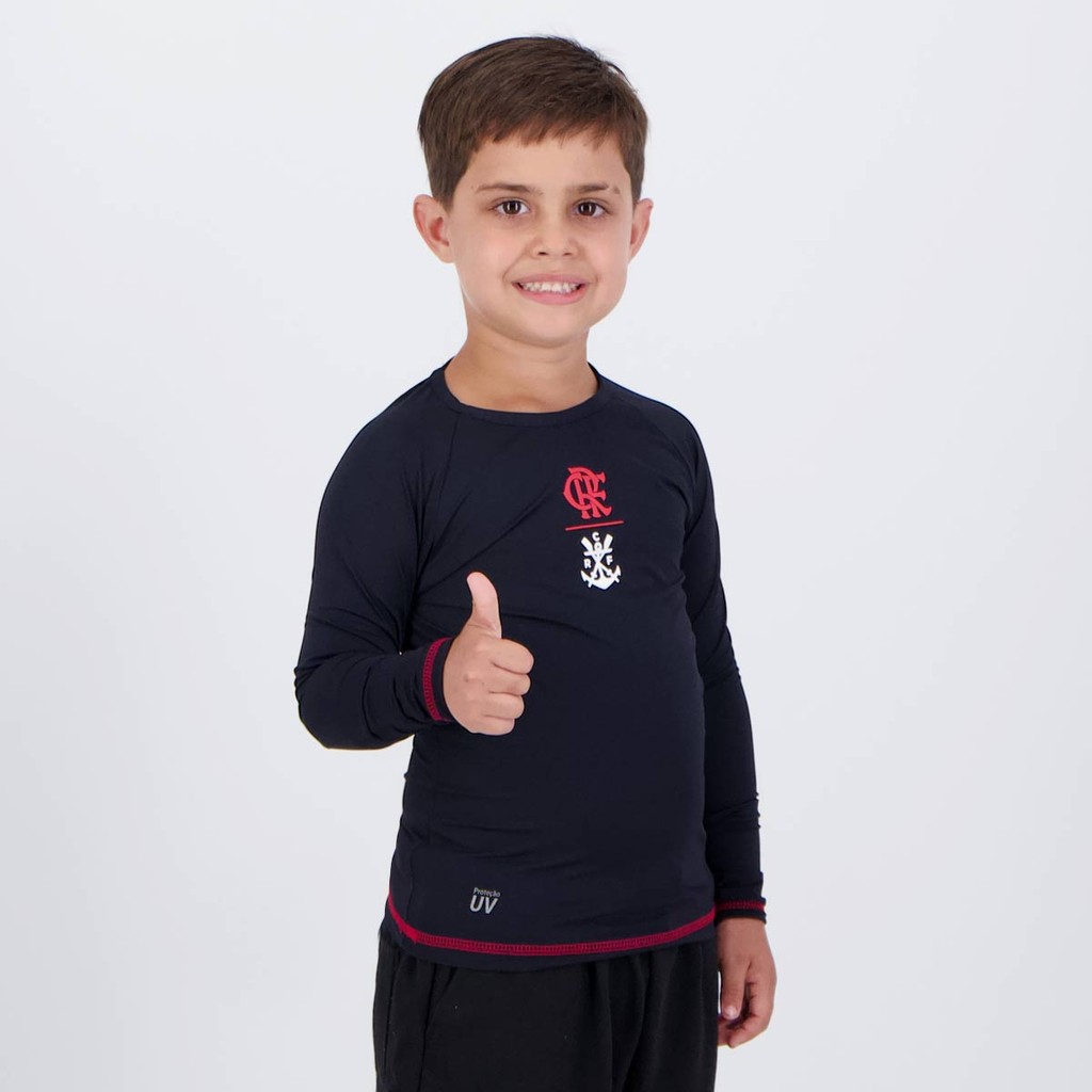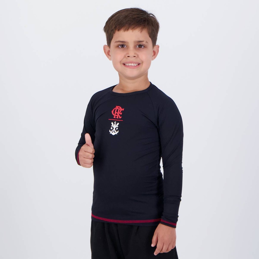 Camisa Térmica Flamengo Guanabara Manga Longa Infantil Preta