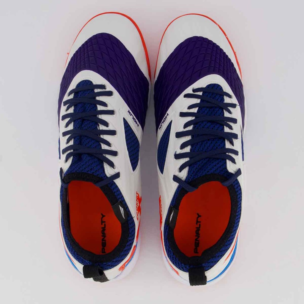 Chuteira Penalty Max 1000 Ecoknit Futsal Branca e Roxa