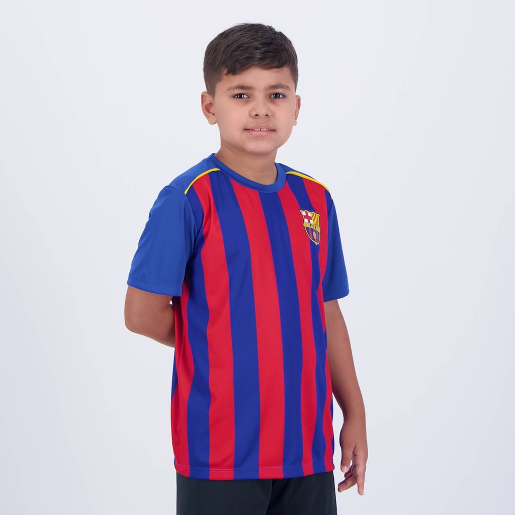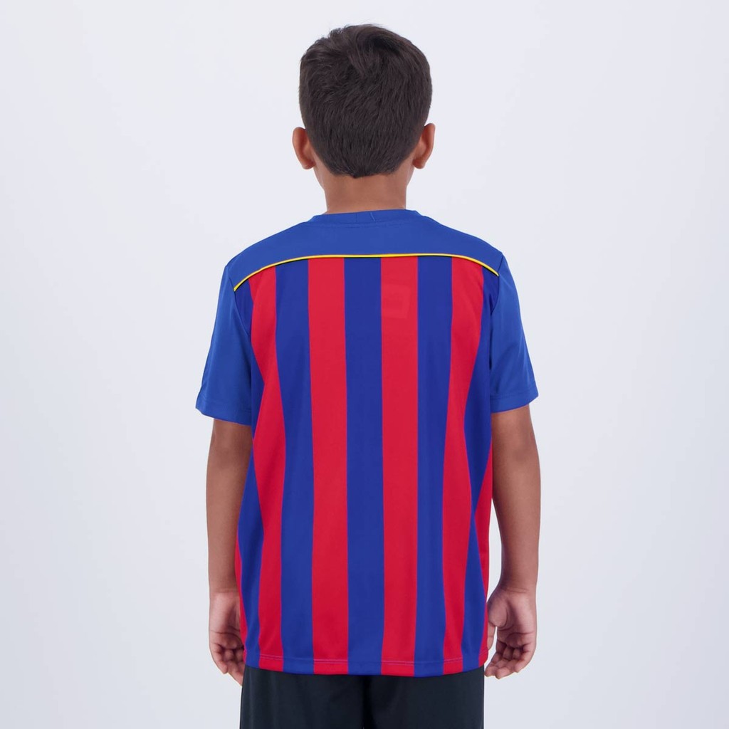 Camisa Barcelona Listrada Juvenil Azul e Vermelha