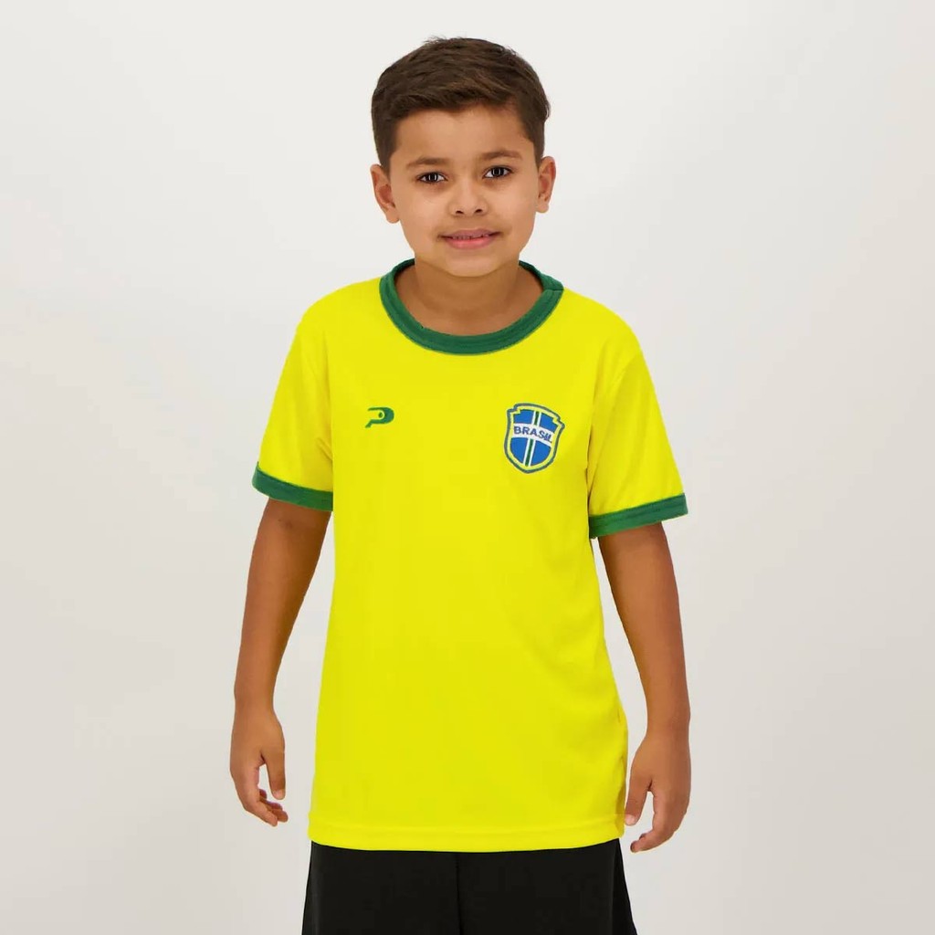 Kit de 2 Camisas Placar Brasil Amarela e Azul Infantil