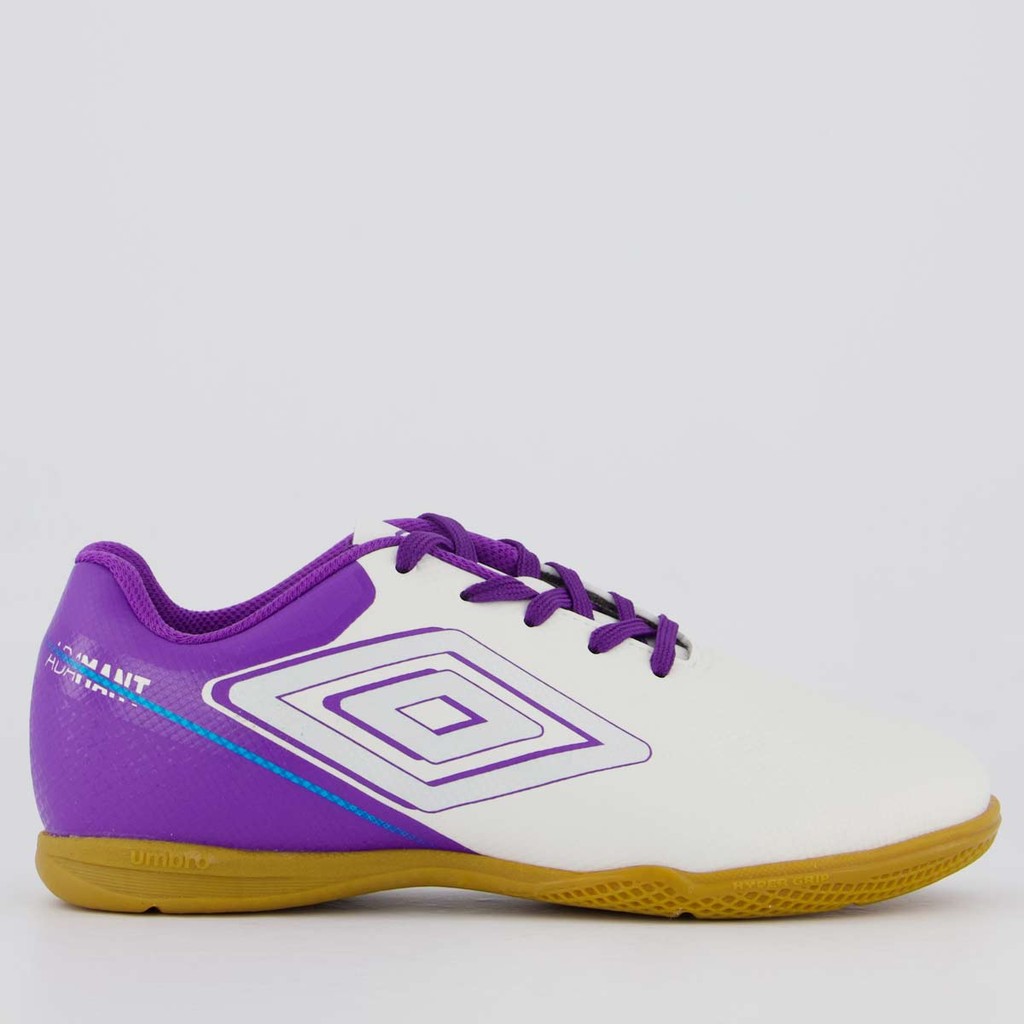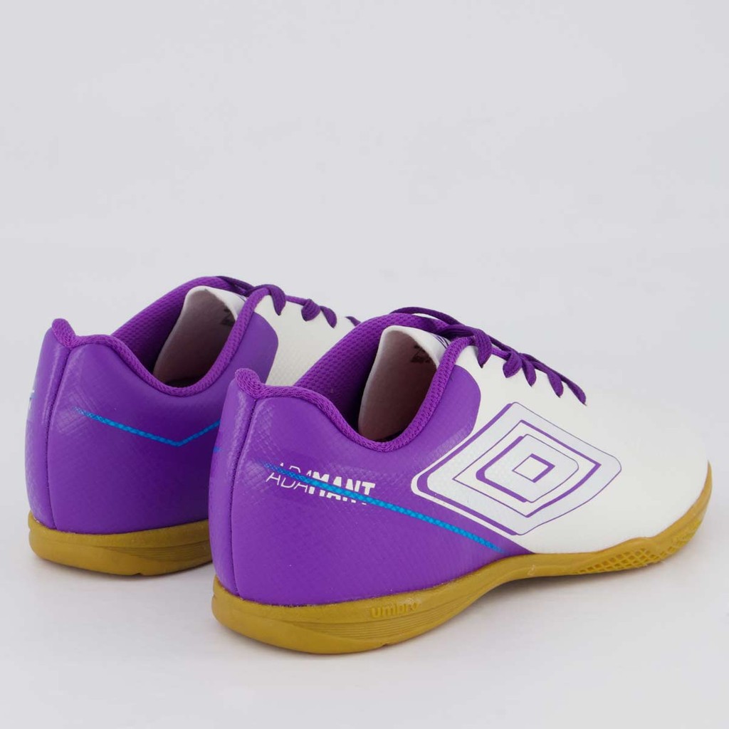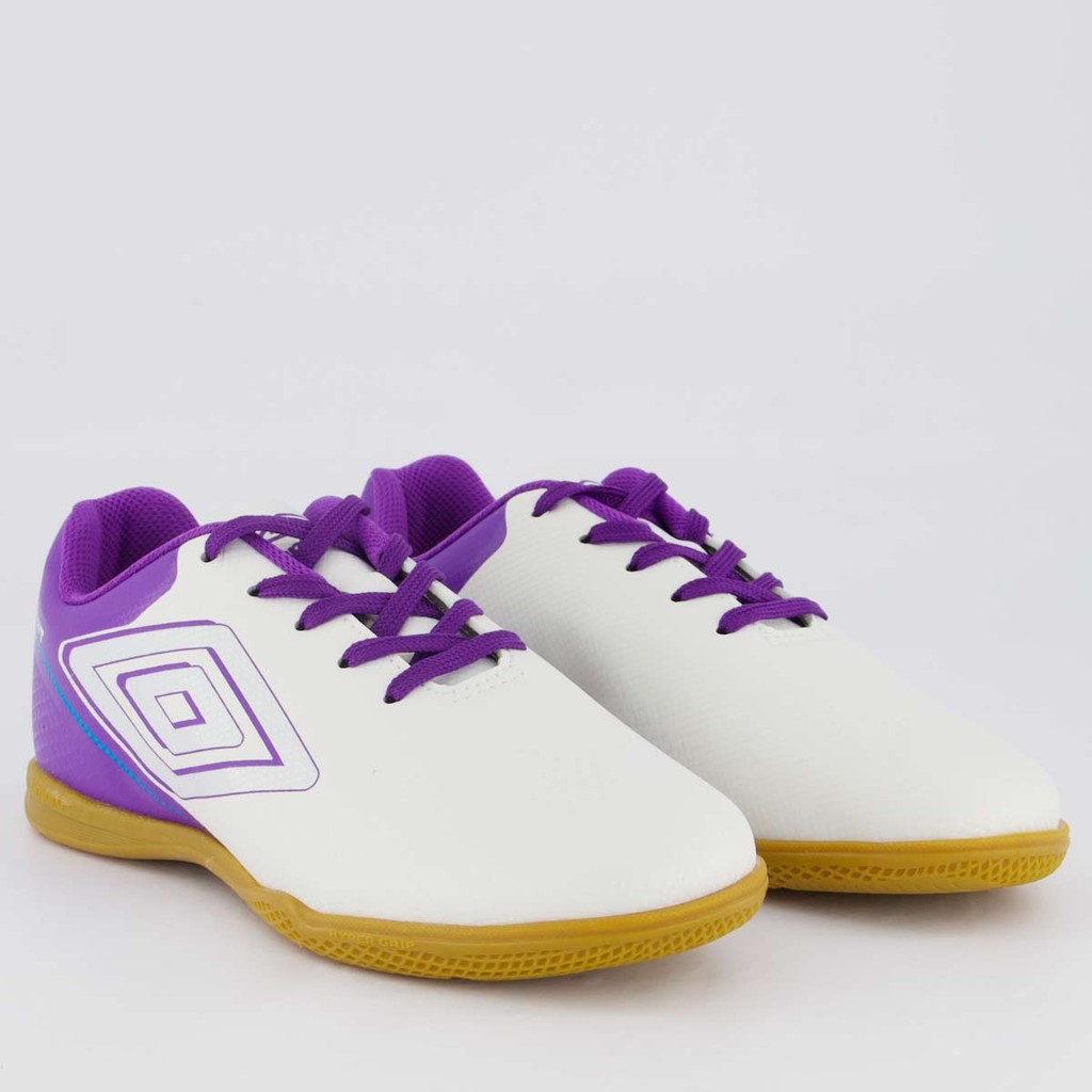 Chuteira Umbro Adamant Top Speed Futsal Juvenil Branca e Roxa