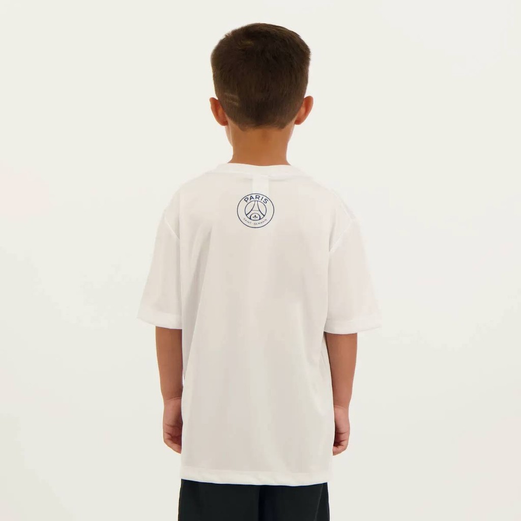 Kit de Camisa e Calção PSG Infantil Branca e Marinho