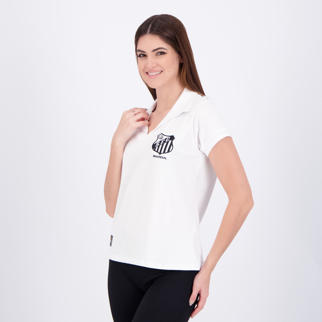Camisa Santos Retrô 1963 Bi Mundial Feminina Branca
