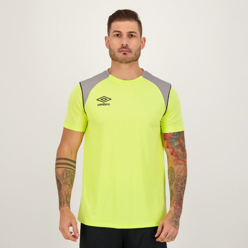 Camisa Umbro Color Pipe Verde Limão e Cinza