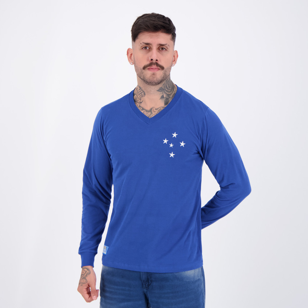 Camisa Cruzeiro Retrô 1976 Manga Longa Azul