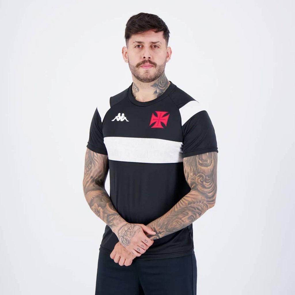 Camisa Kappa Vasco Supporter Cuts Preta e Branca 99 Vegetti