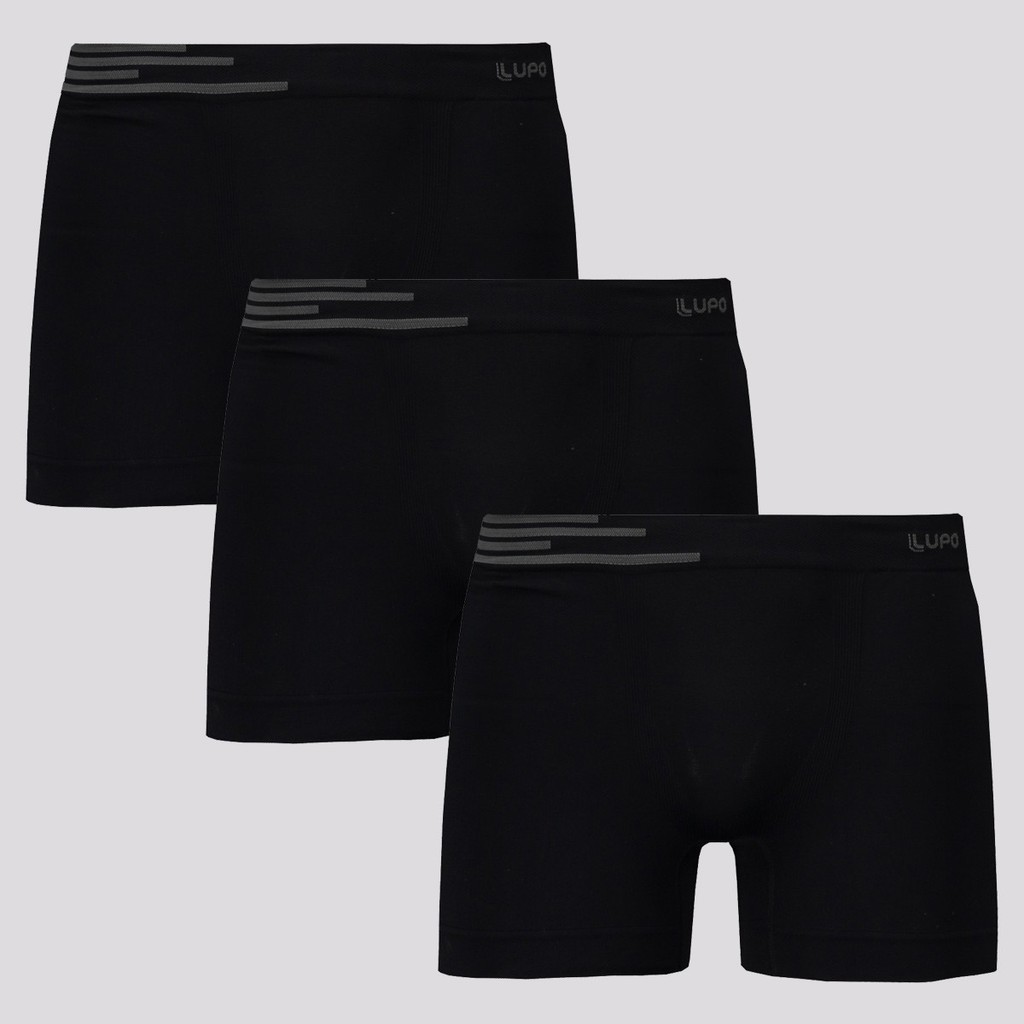 Kit de 3 Cuecas Boxer Lupo Fiber Preta