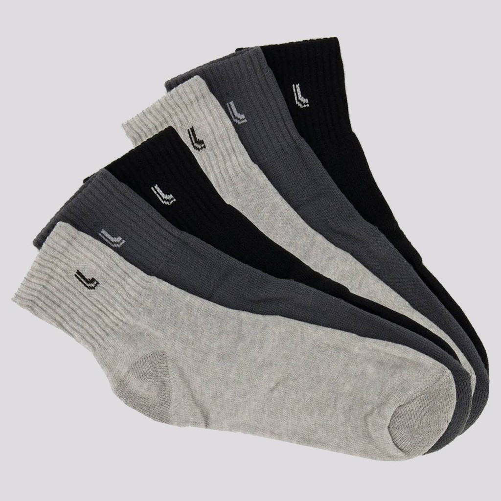Kit Meia Lupo Cano Médio 6 Pares Preta e Cinza Mescla