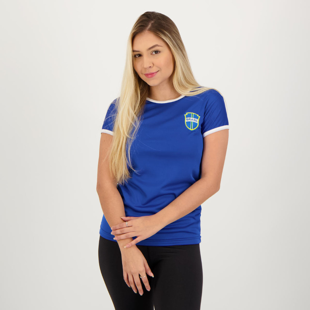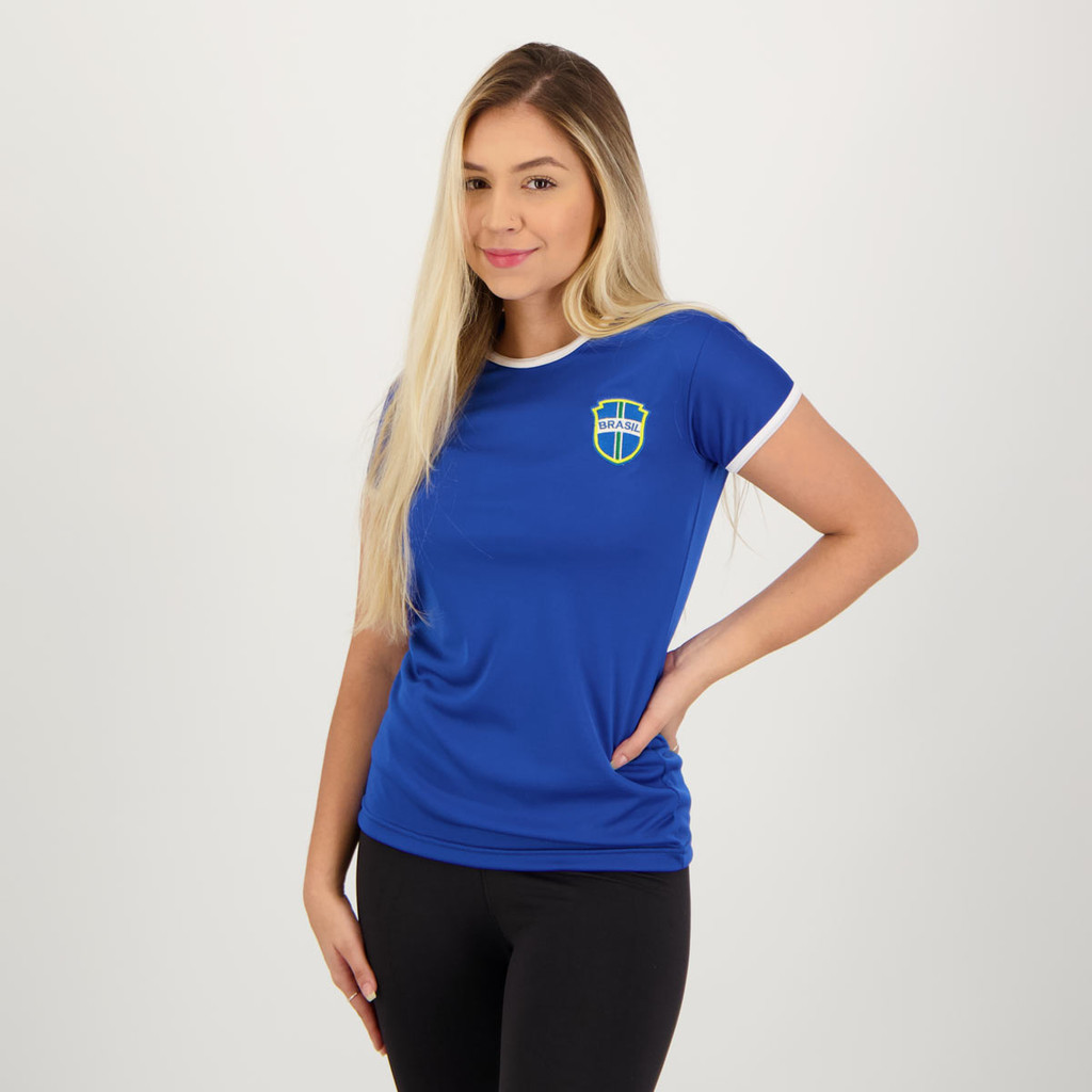 Camisa Placar Brasil Brasão Azul Feminina