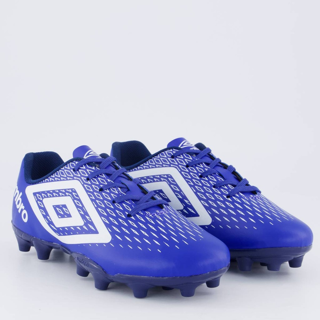 Chuteira Umbro X-Diamond Campo Juvenil Azul e Branco