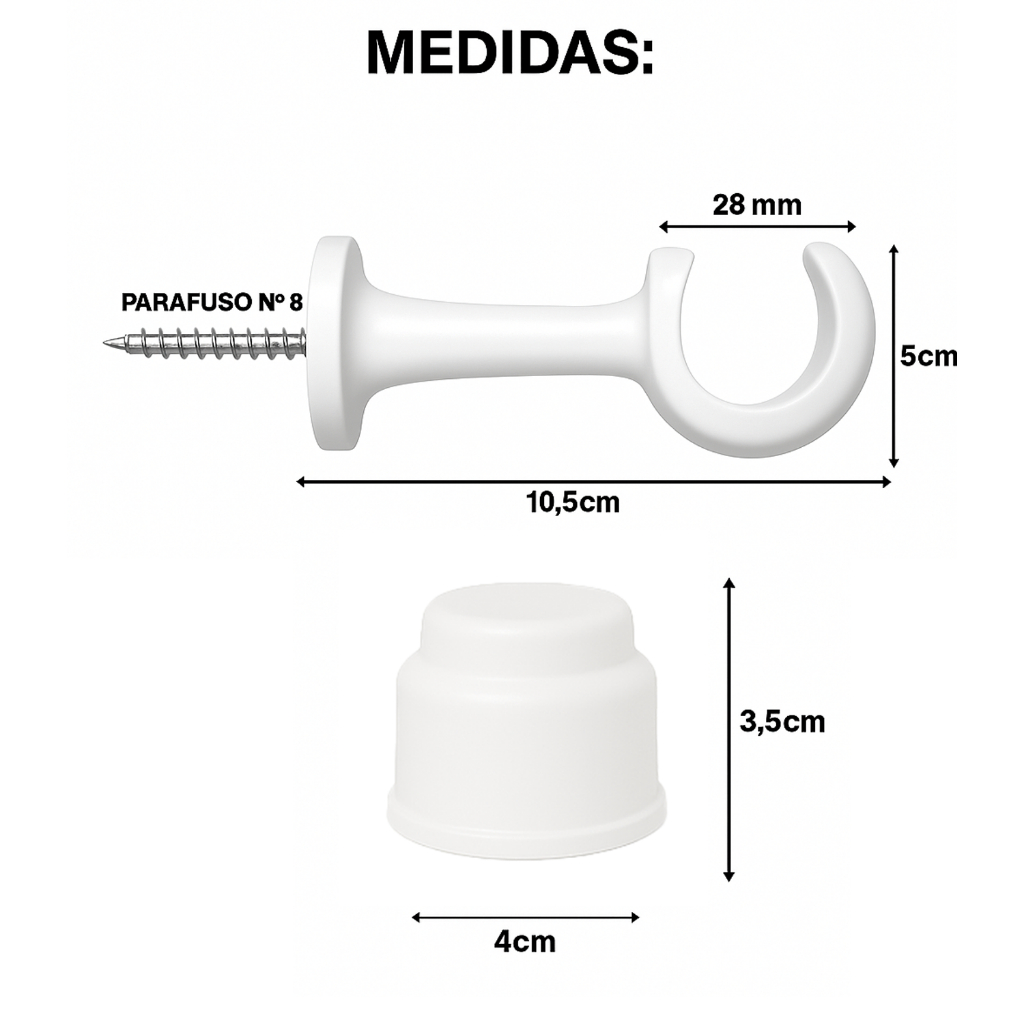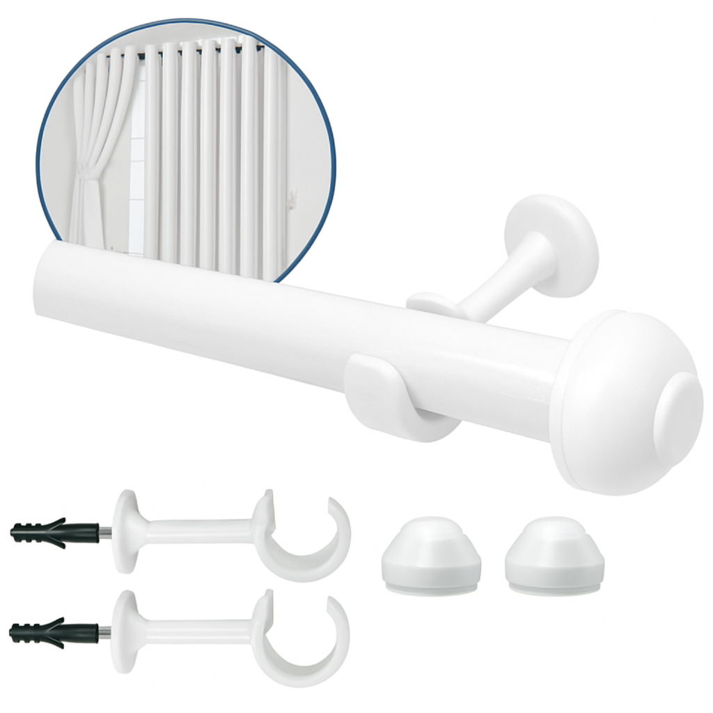 Kit varão de cortina 1,20 metros 19mm simples branco