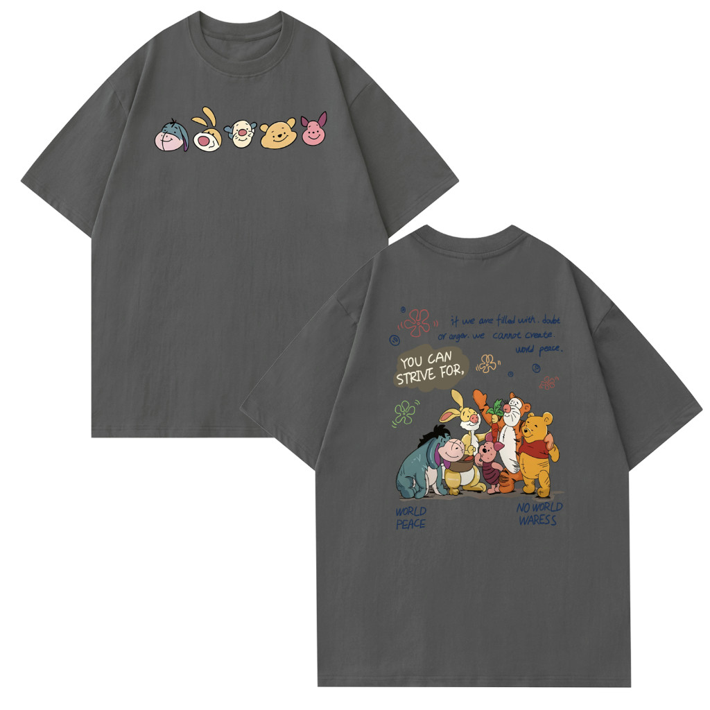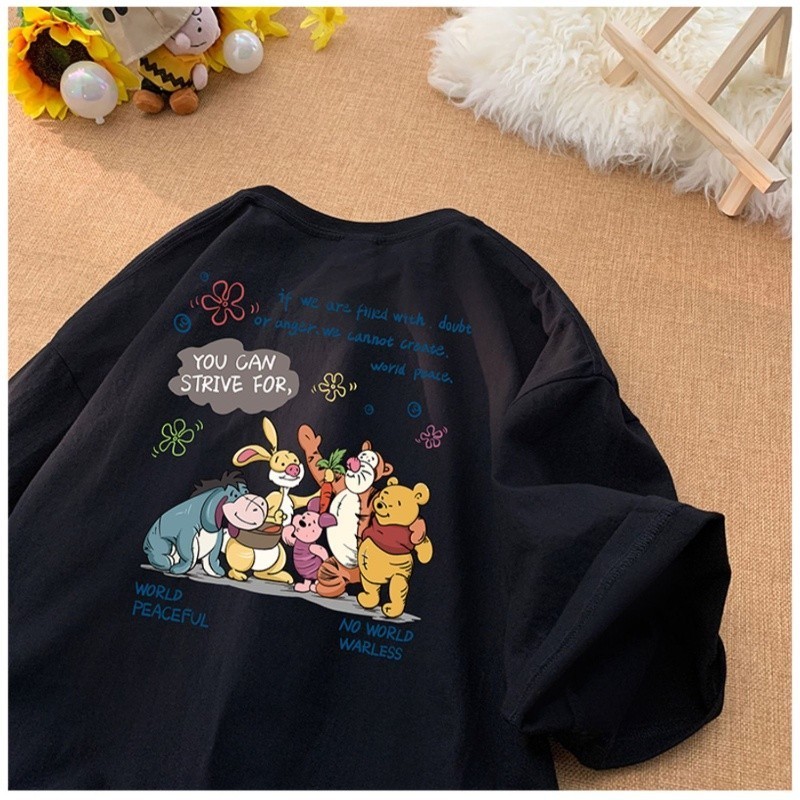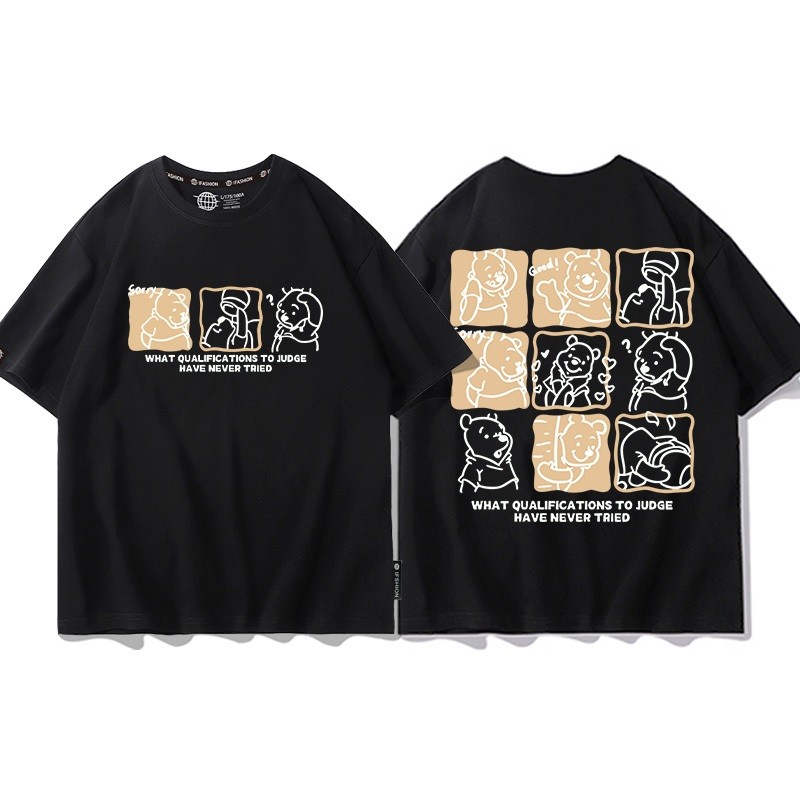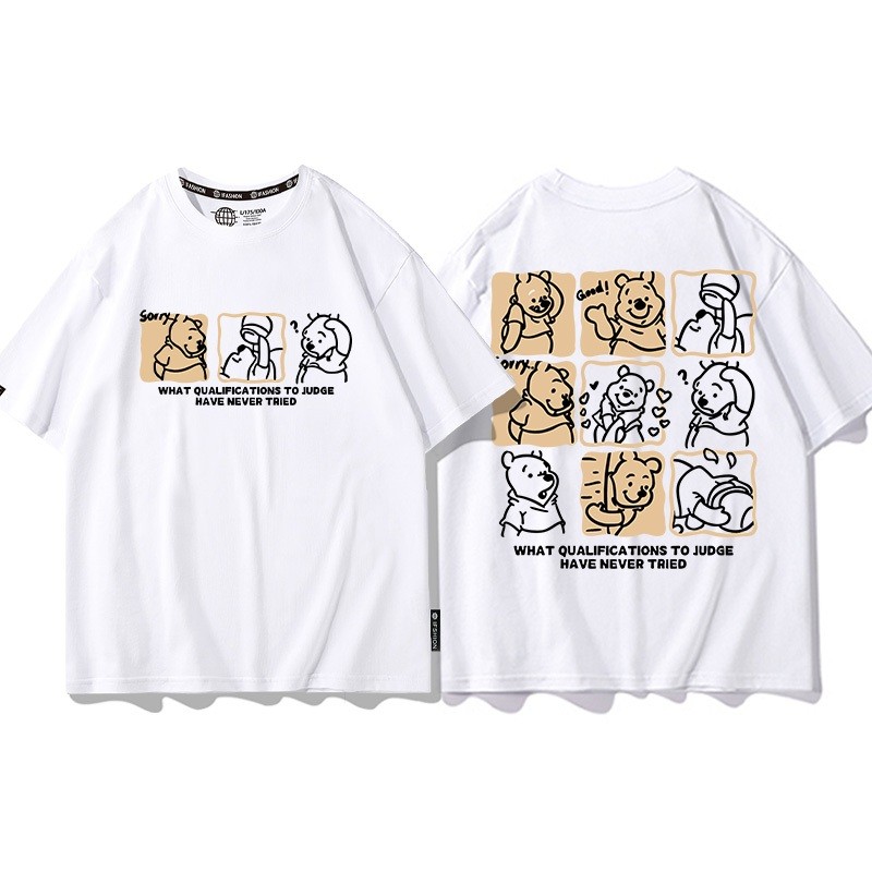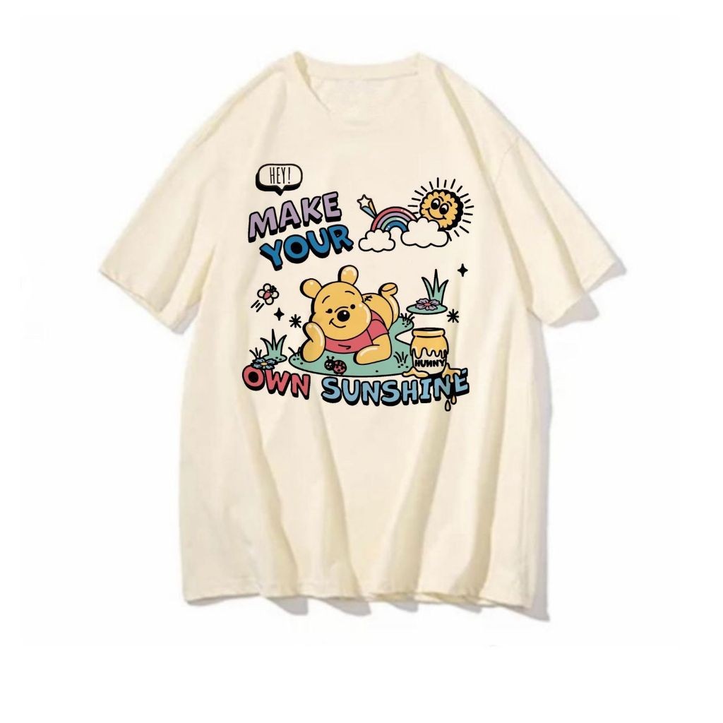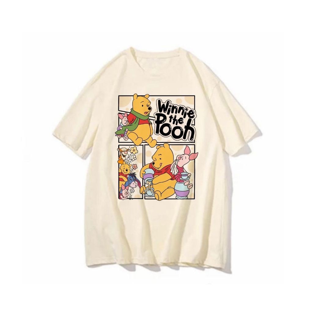 [Camiseta Premium em Algodão Puro]SISI Cartoon Camiseta De Manga Curta Feminina Estampada Casual Ursinho Pooh