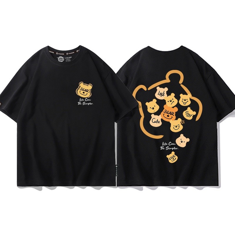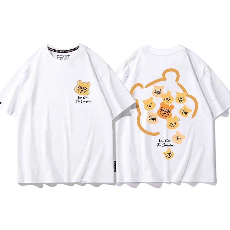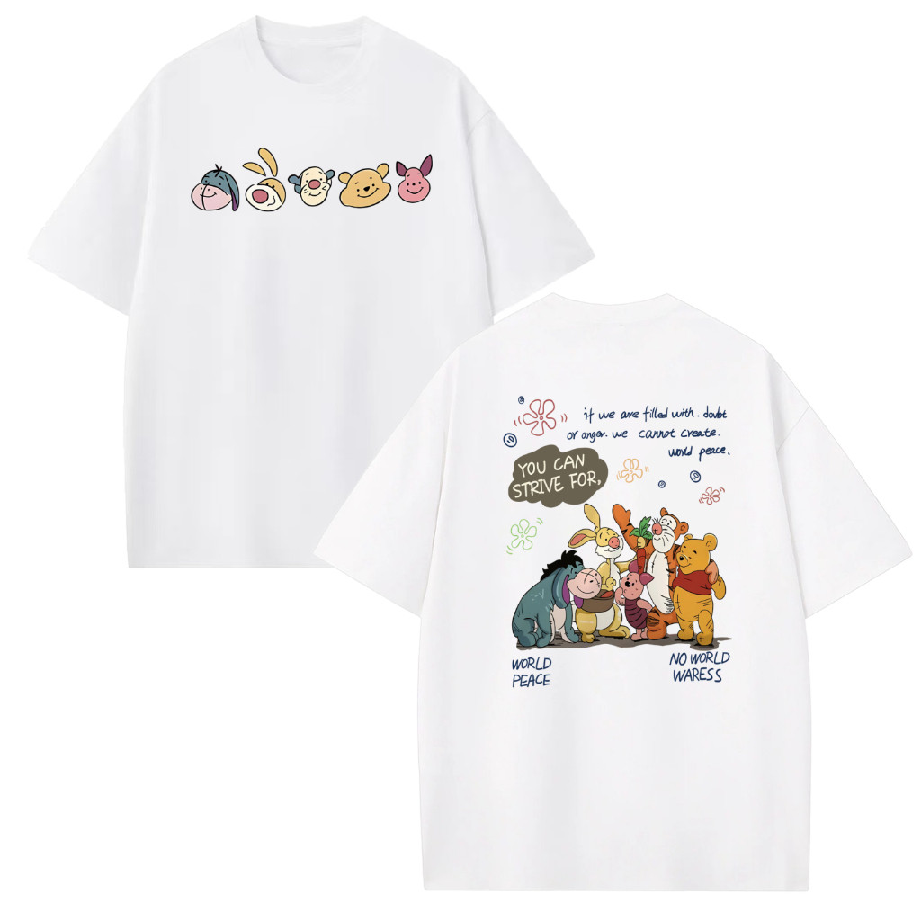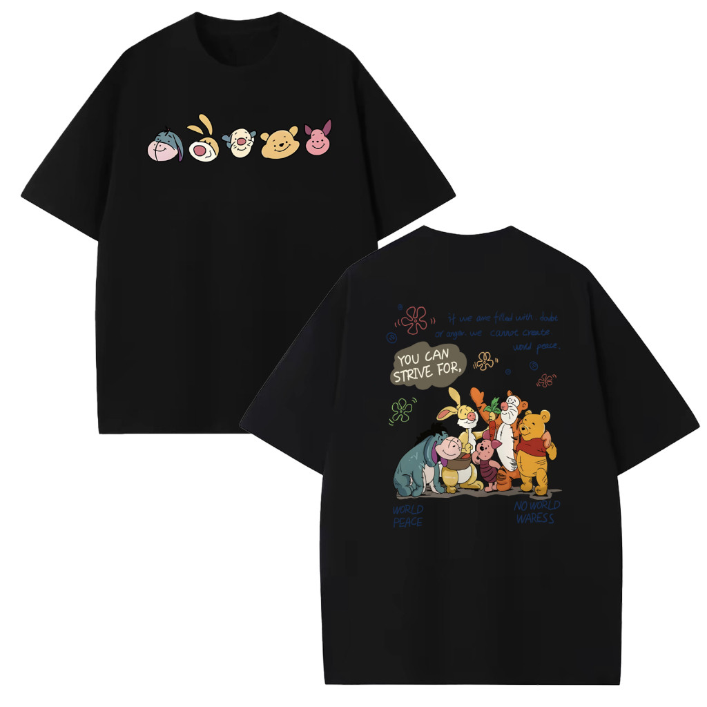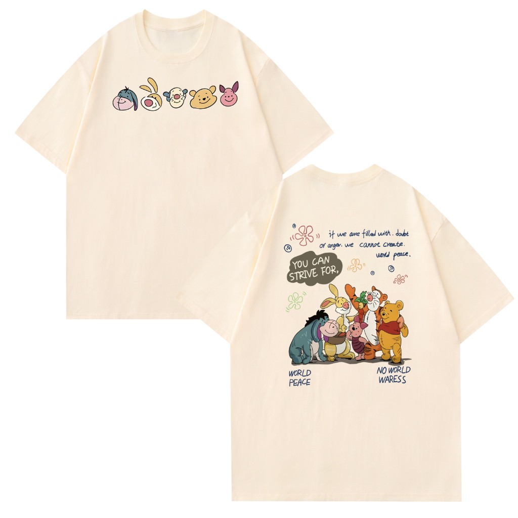 [Camiseta Premium em Algodão Puro]SISI Cartoon Camiseta De Manga Curta Feminina Estampada Casual Ursinho Pooh