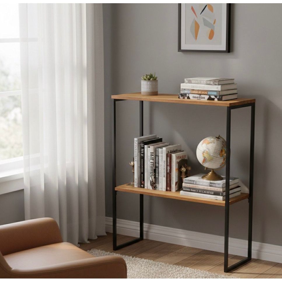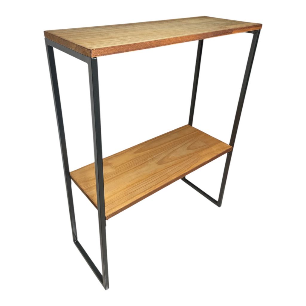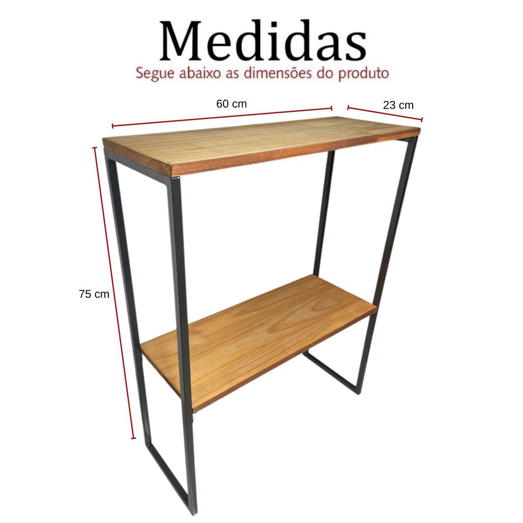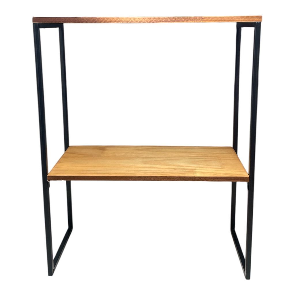 Prateleira 2 Divisórias Madeira Pinus Base Ferro Estilo Industrial Organizador-Design Industrial