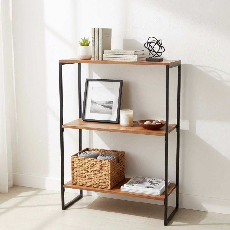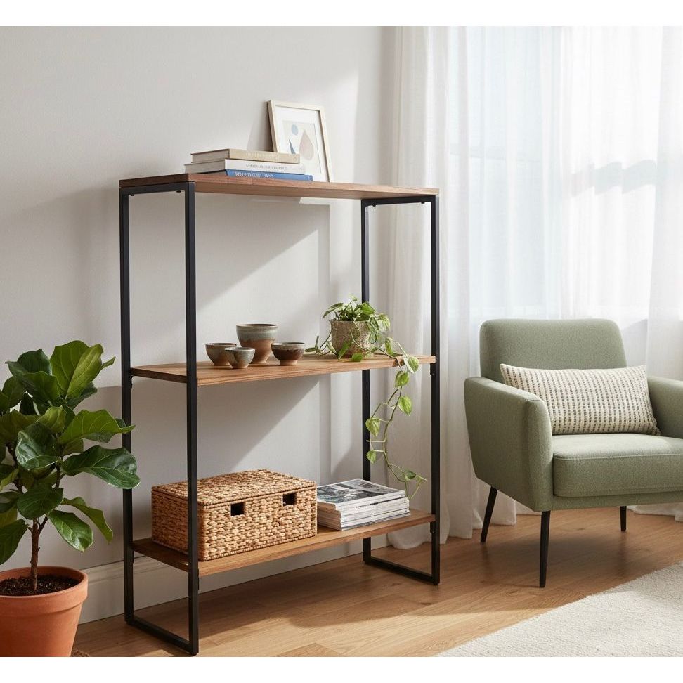 Aparador Prateleira Organizador 3 Divisórias Madeira Pinus Base Ferro Organize Decore Ambientes