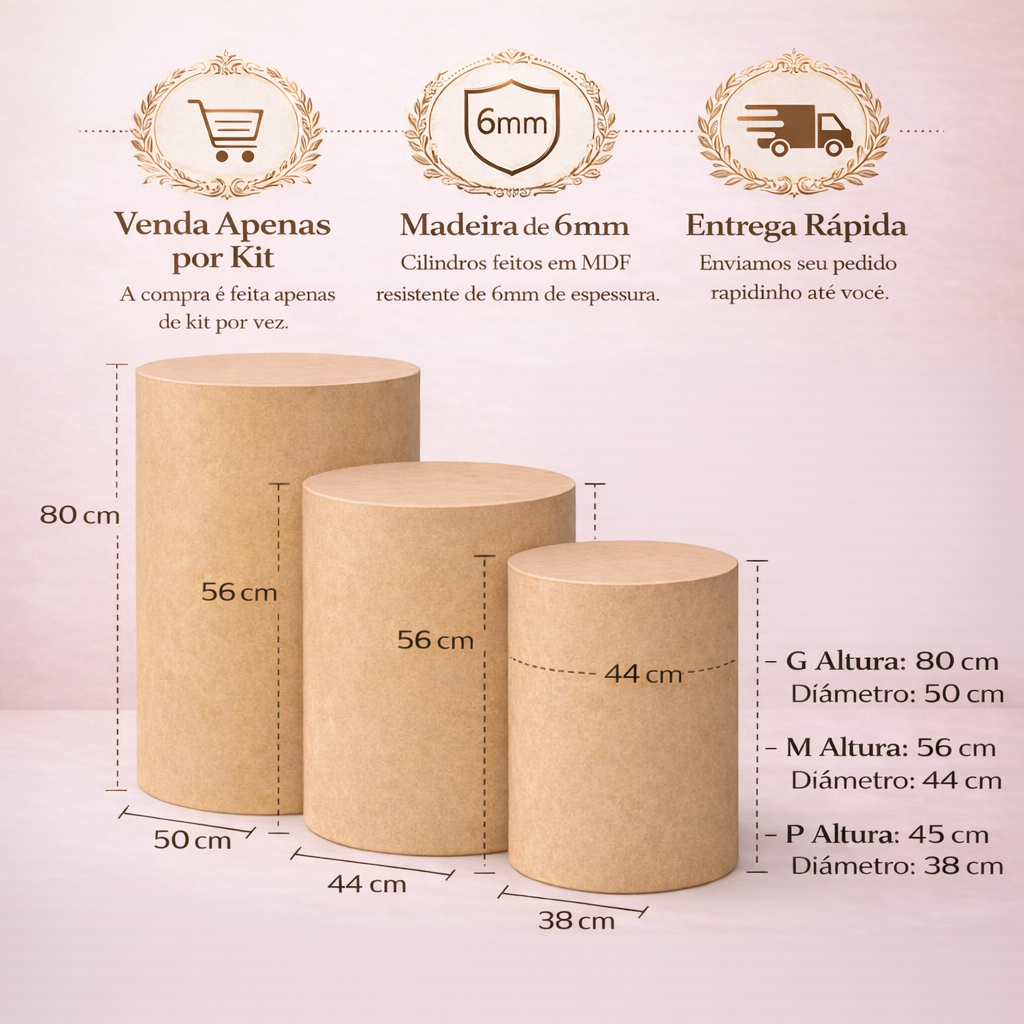 Kit de Cilindros MDF Cru – Decoração Profissional com Três Tamanhos