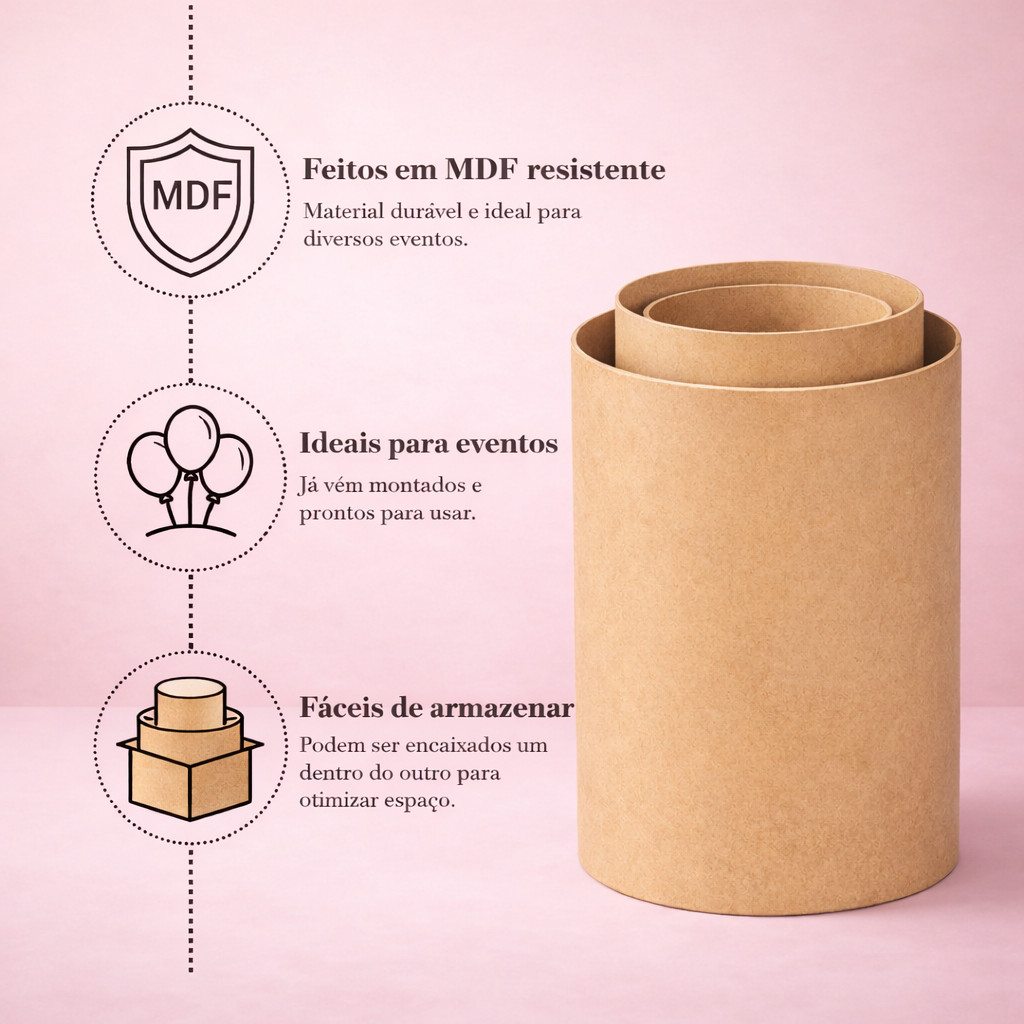 Kit Cilindros MDF Festa – 3 Peças para Decoração