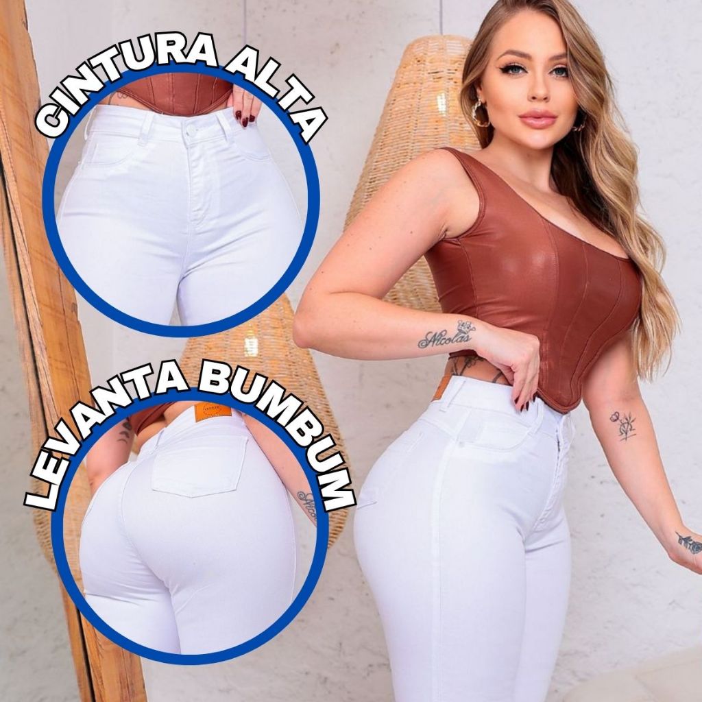 Calça Skinny Branca Feminina Com Lycra Cintura Alta Modelo Levanta Bumbum Não Fica Transparente