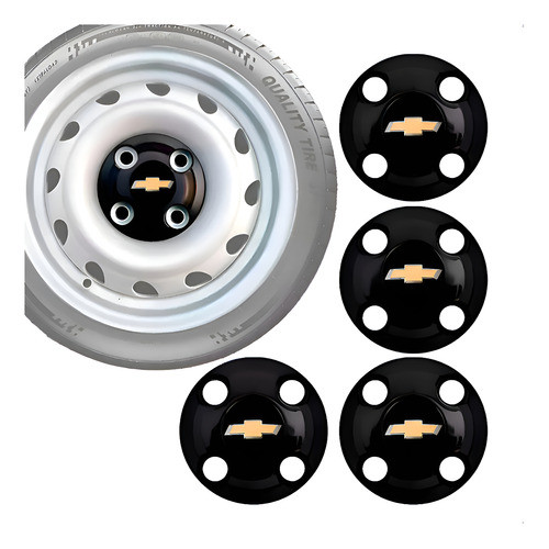 Kit 4 Calota Centro Roda Onix Corsa Celta Aro 13 14 15 - Preto