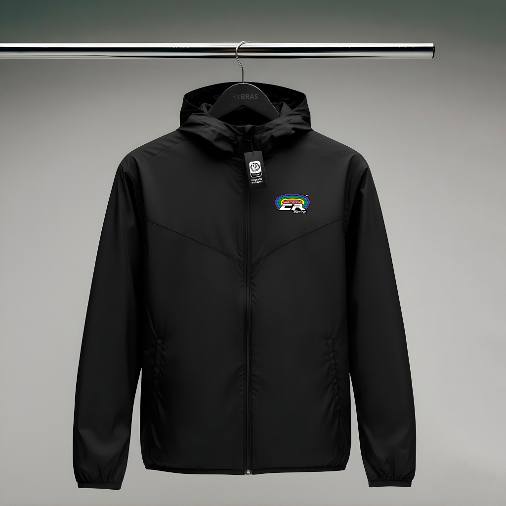 Jaqueta Corta Vento Masculina - CALIFORNIA RACING - Com Capuz, Bolso e Zíper - Academia Corrida Esportes