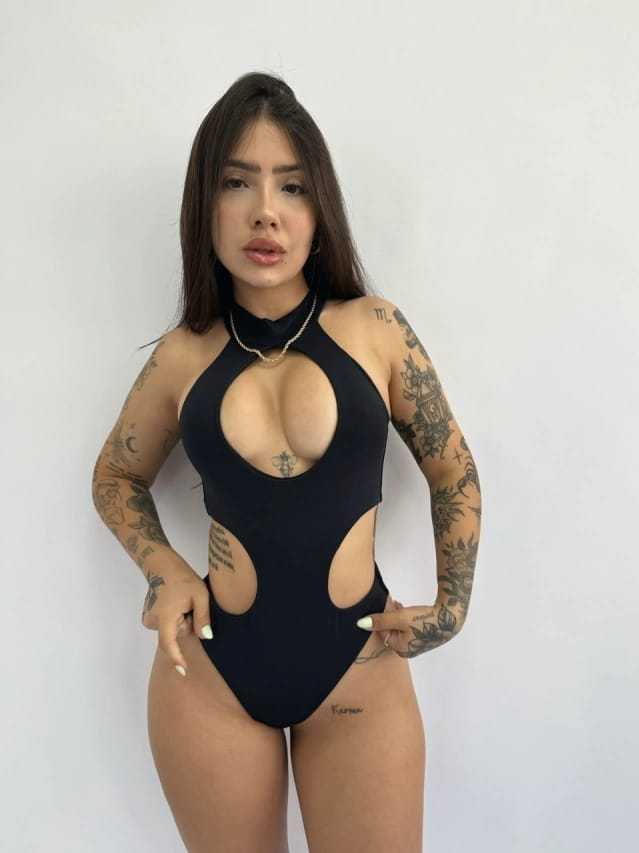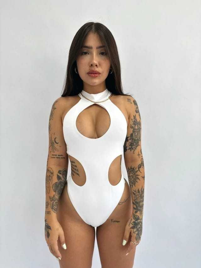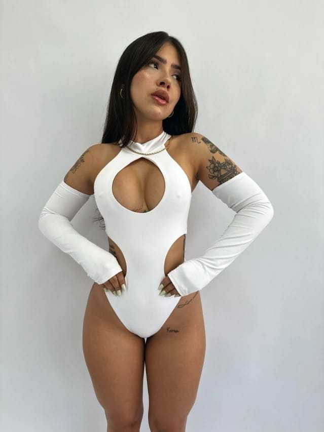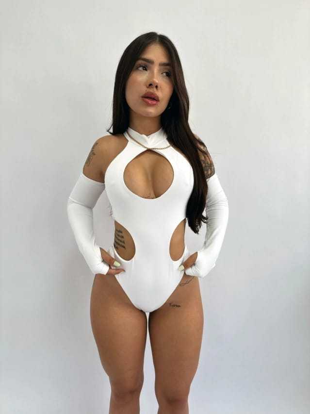 Body feminino poliamida verão tecido duplo com manga Preto e Branco