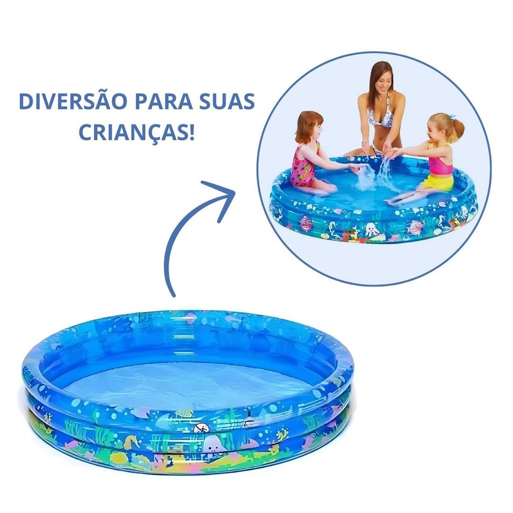 Piscina Infantil 3 Anéis Estampa Fundo Do Mar Água ou Bolinha
