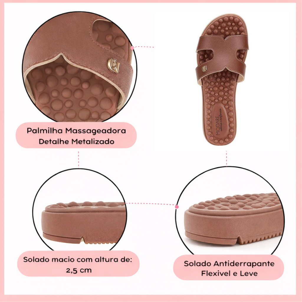Sandália Modare Feminina Ultraconforto Tira H Slide Massageador Ortopédico Rasteira Leve Original