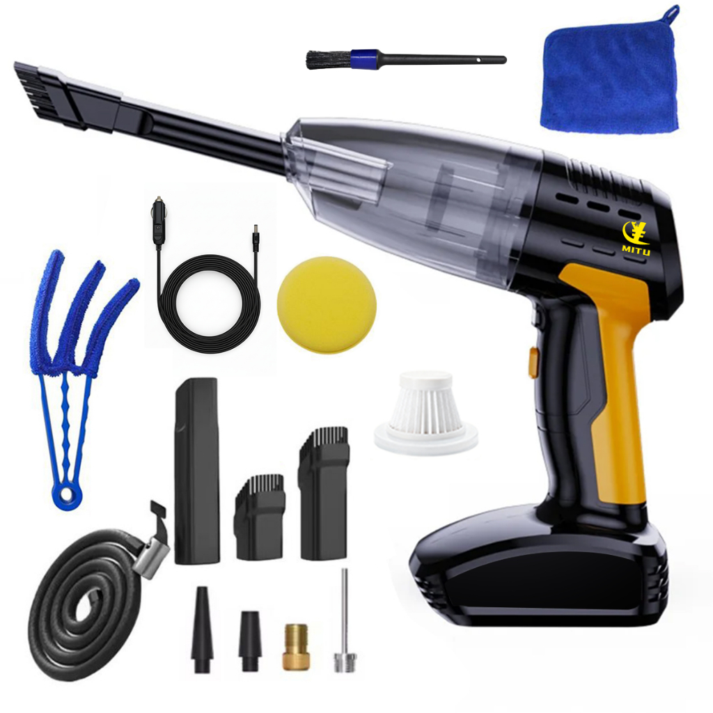 Aspirador de pó portátil 4 em 1 para carro, inflador de pneus Multifuncional Com Fio Para Carros