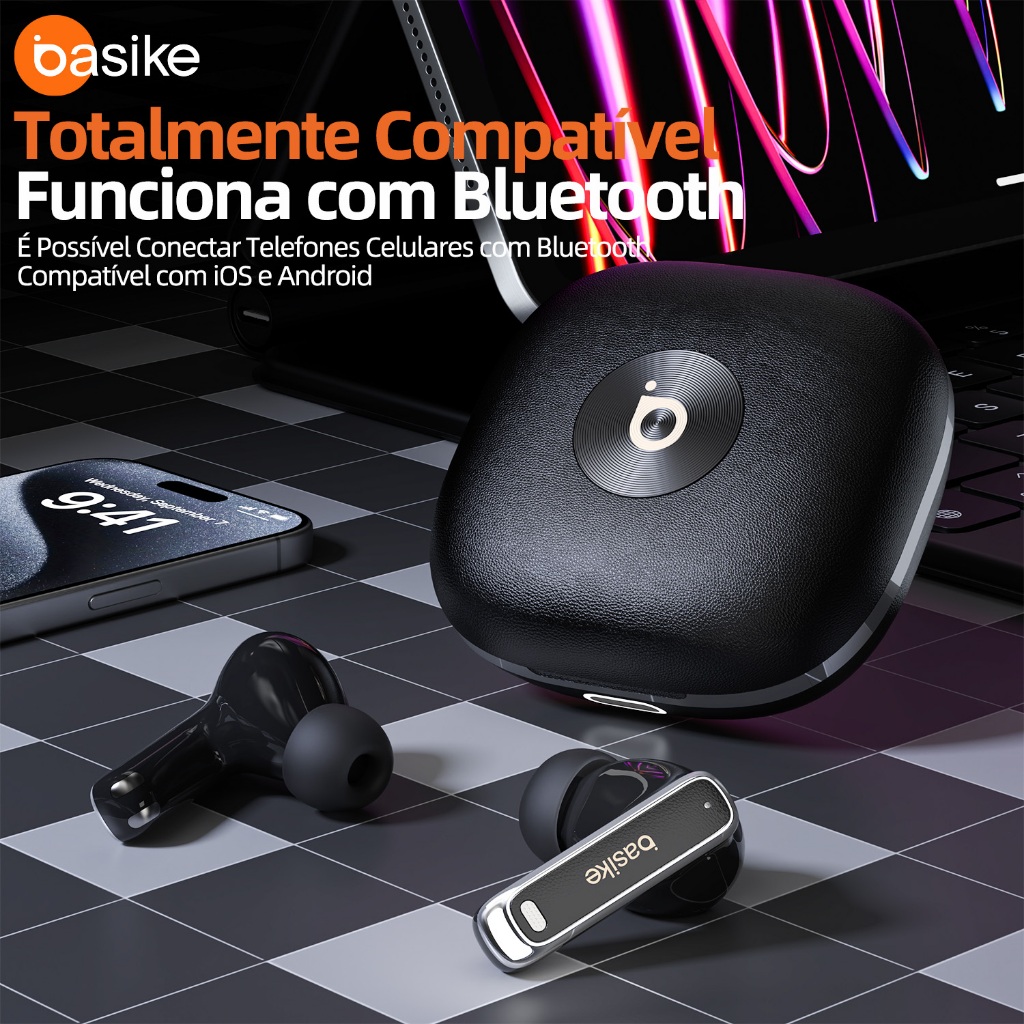 BASIKE ANC-46dB Fones De Ouvido Sem Fio ENC Cancelamento De Ruído 35h-Bateria IPX4 à prova d'água 4-Mic Bluetooth5.4