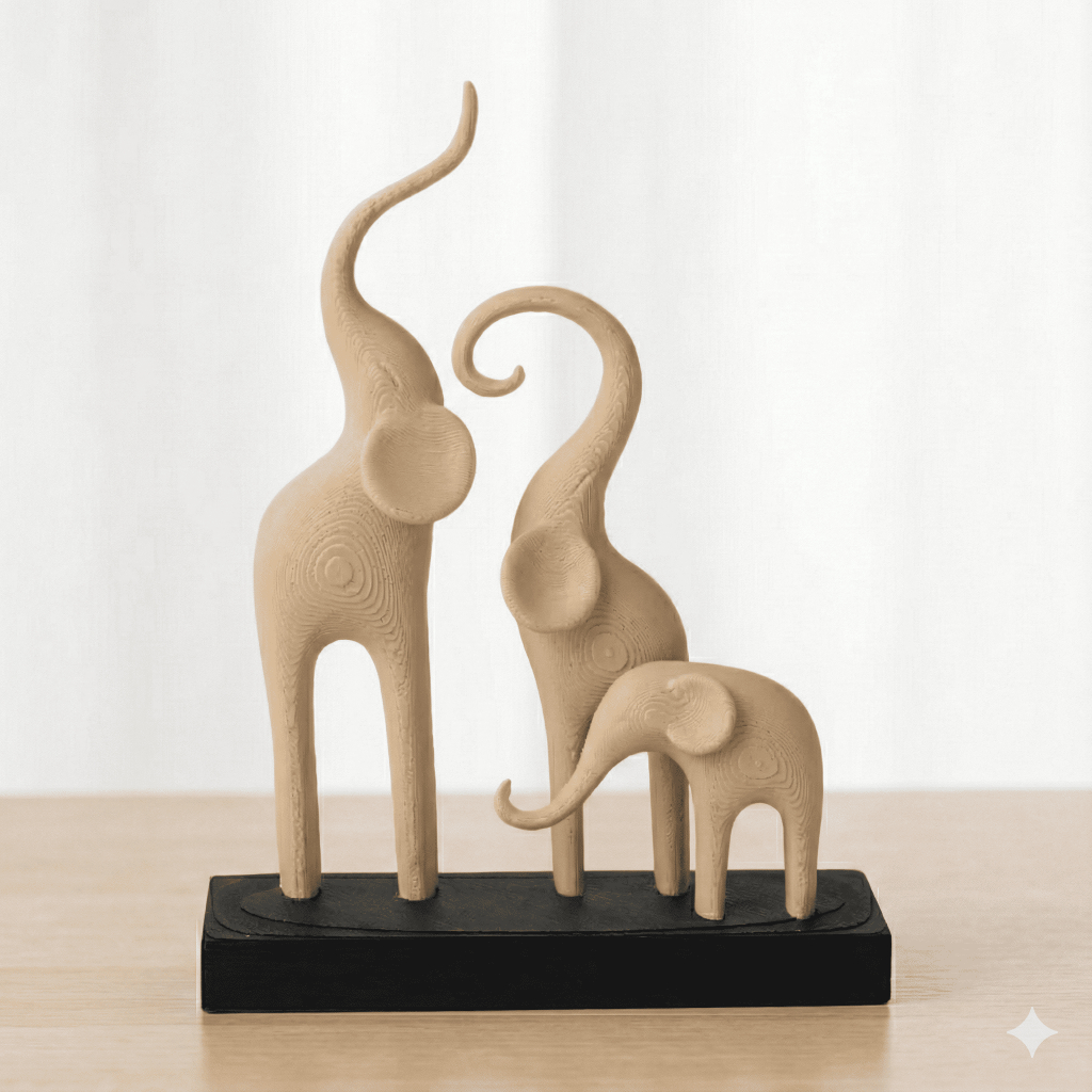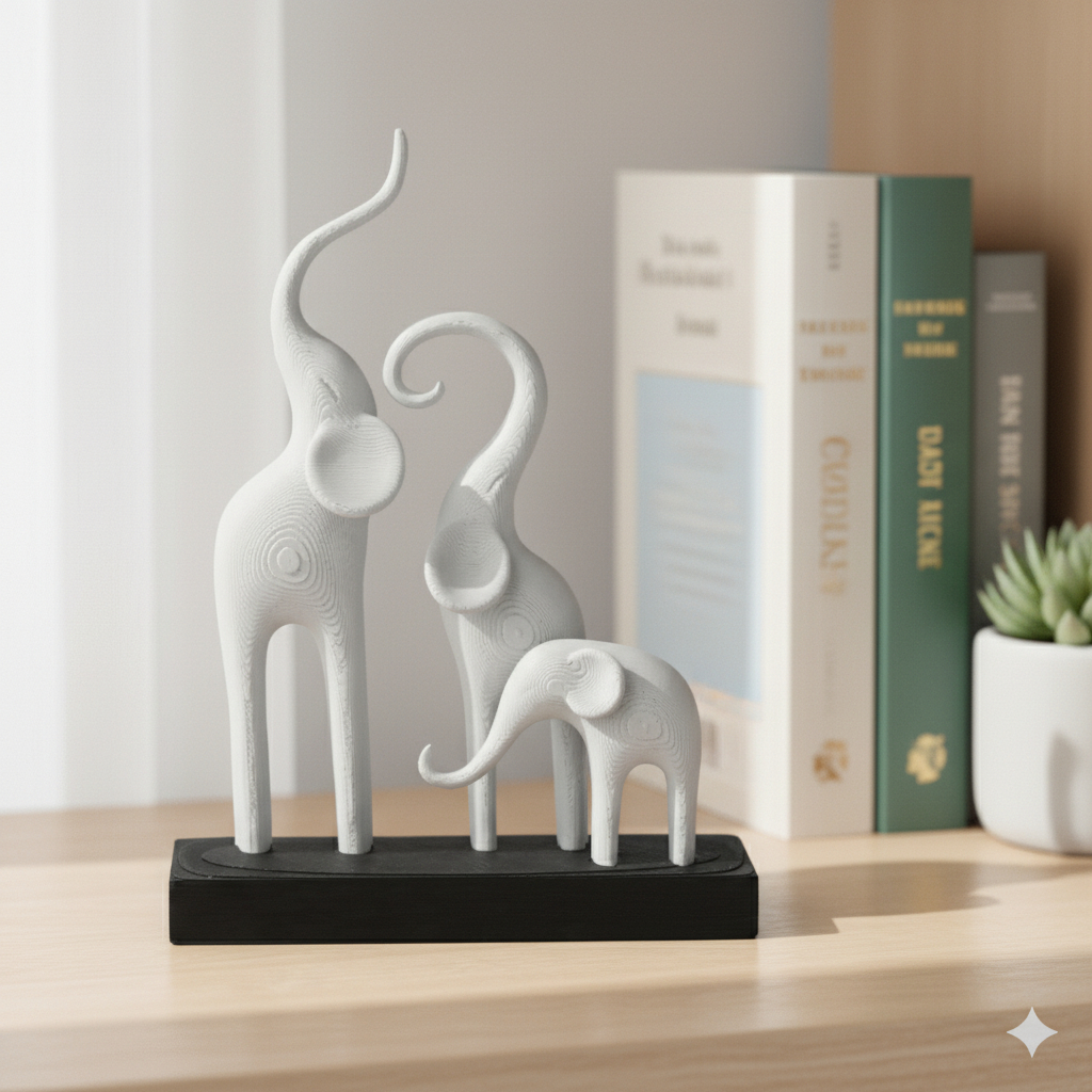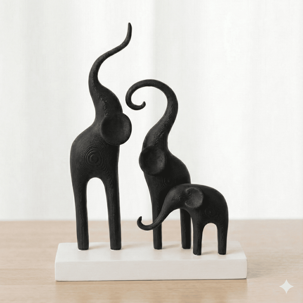Escultura Família Elefantes Decorativa | Estátua Moderna para Sala, Mesa, Aparador | Enfeite de