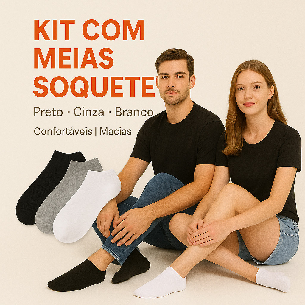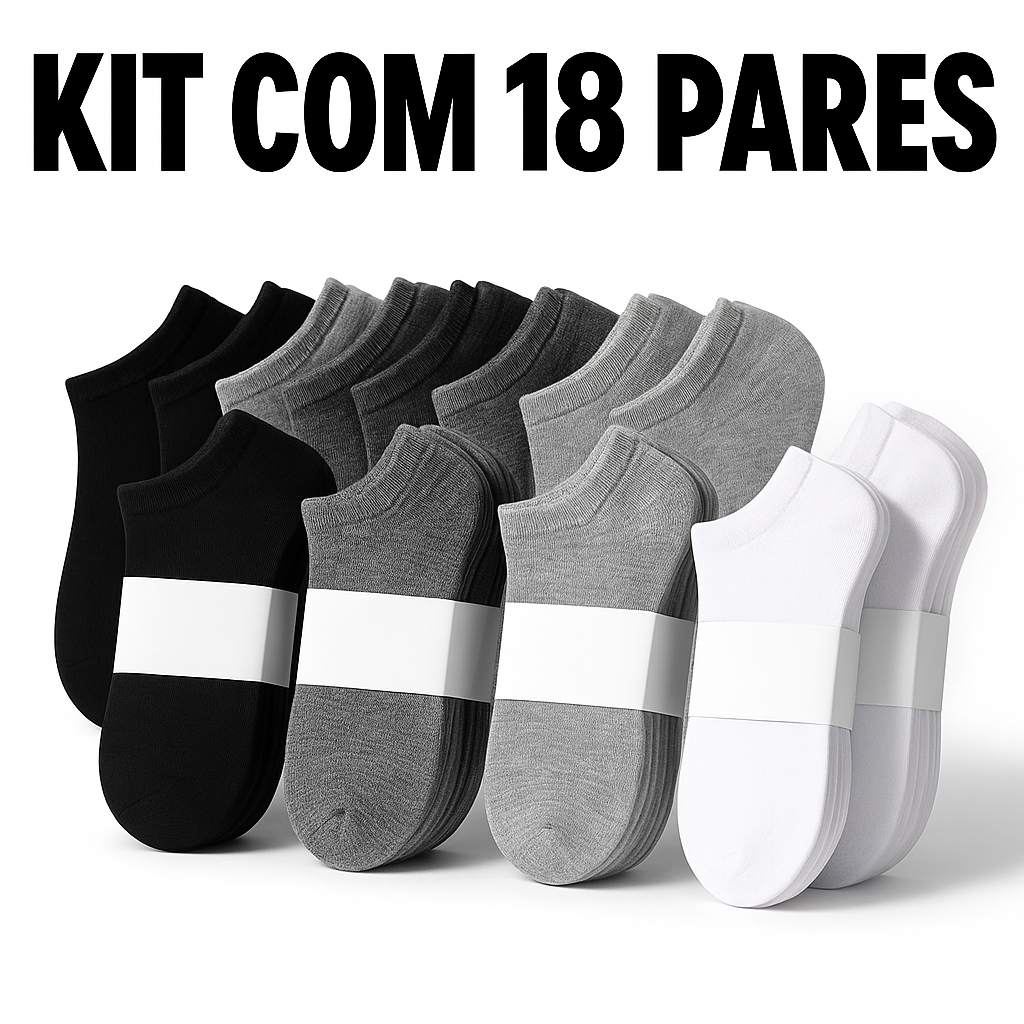 Kit 18 Pares de Meias Soquete Cano Curto Masculina e Feminina Unissex Varejo Meia Cano Baixo Grossa