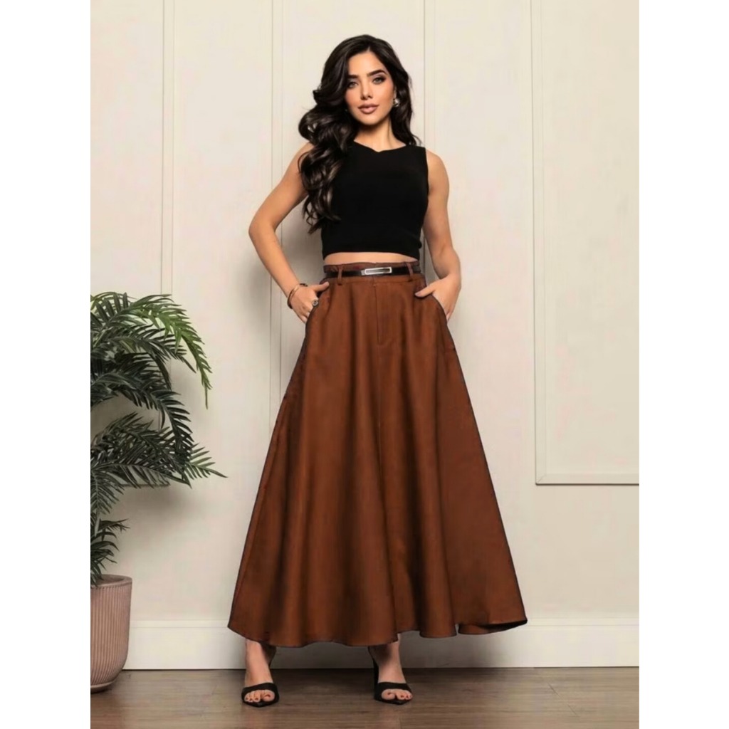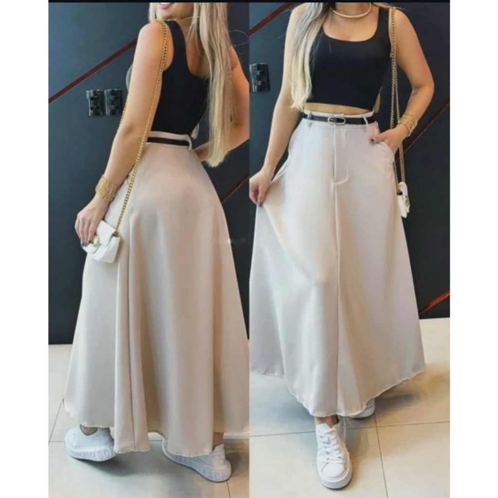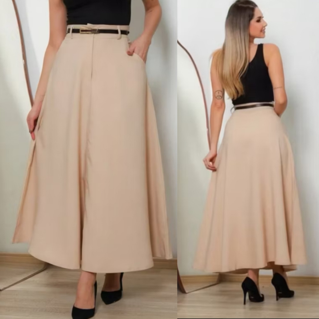Saia Longa Feminina Rodada Moda Evangélica Casual Básica Inverno Cintura Alta Elegante Tendência