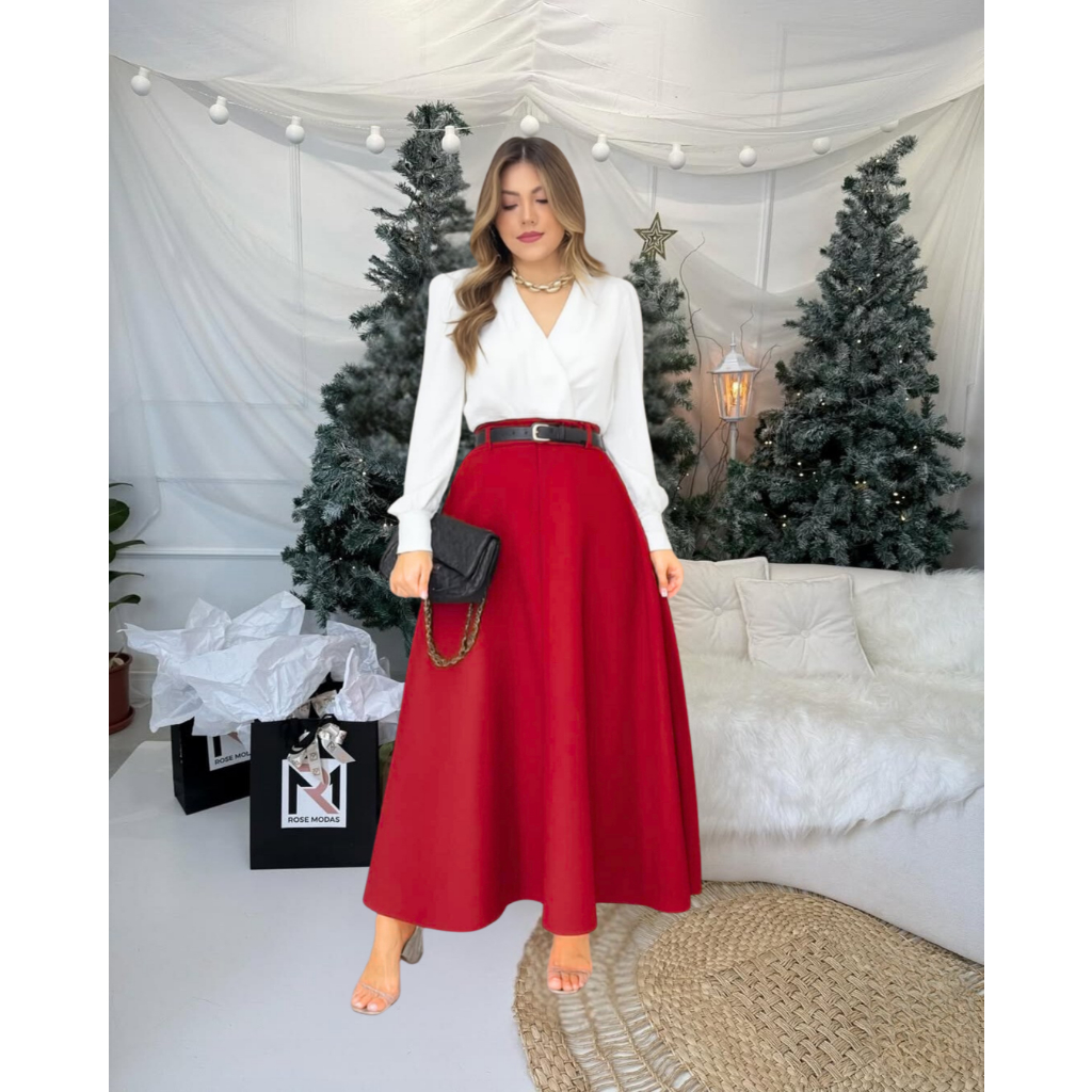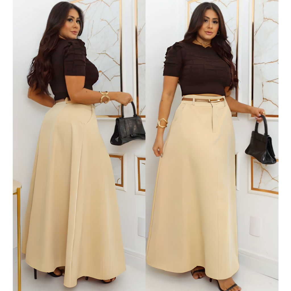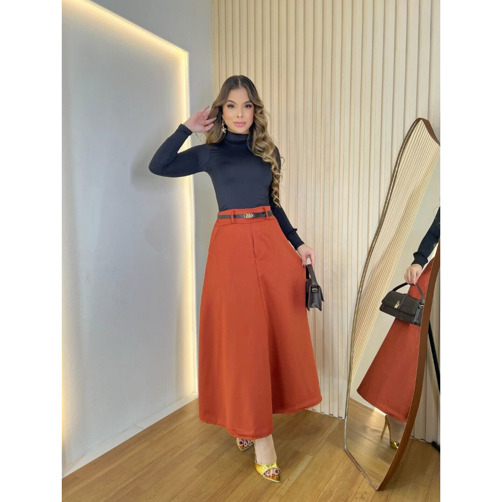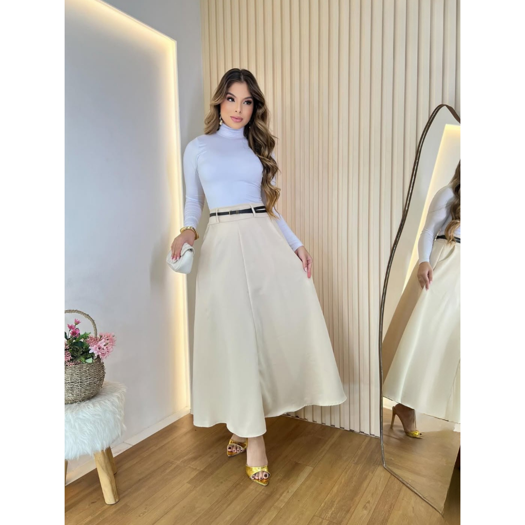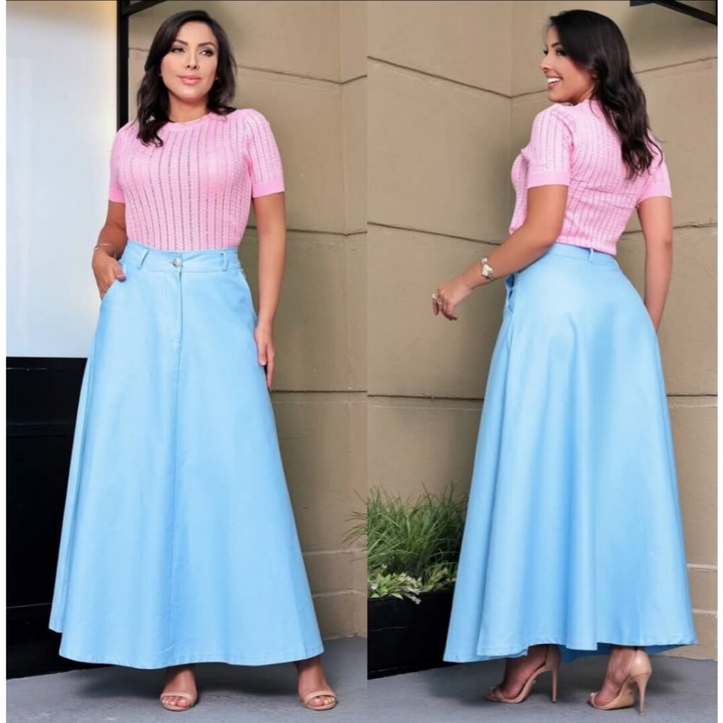Saia Longa Alfaiataria Feminina Moda Evangélica Cintura Alta Promoção Pronta Entrega