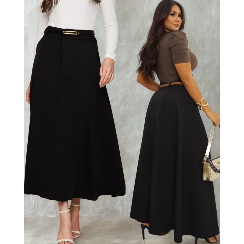 Saia Longa Feminina Moda Evangélica Alfaiataria Casual Cintura Alta