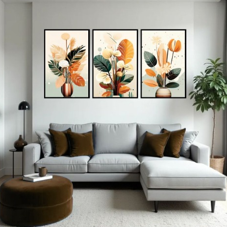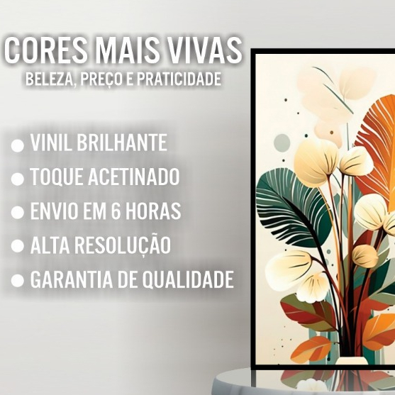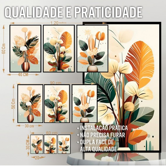Quadros Decorativos Jarros Folhagem Bege Folhas Verdes Mosaico Sala Quarto Escritório 50X30 Premium