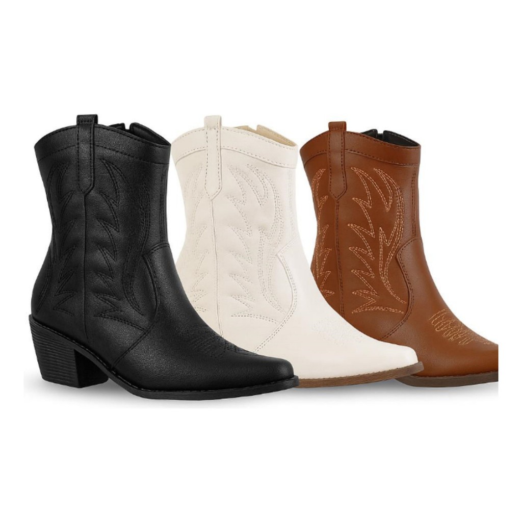 Bota Country Feminina Western Bico Fino Salto Médio + Bolsa e Cinto Rodeio