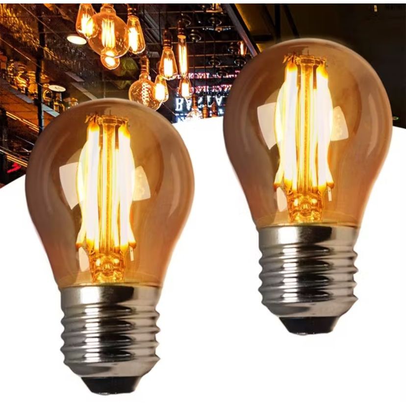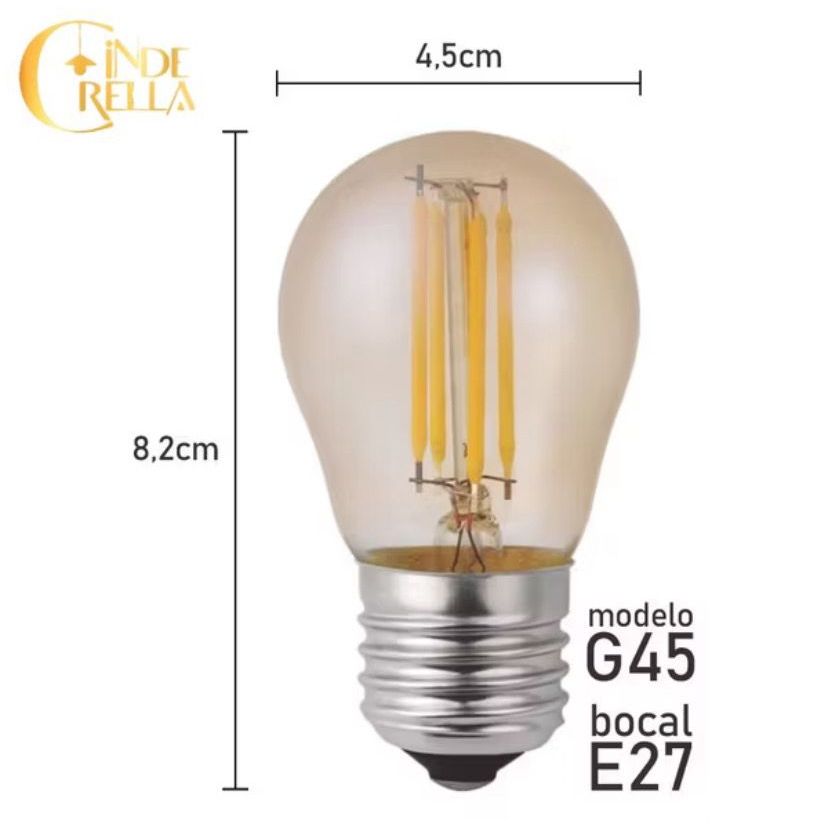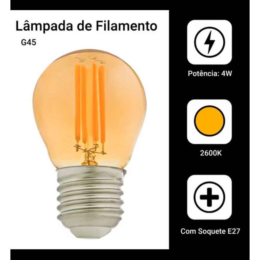 Kit 2 Lâmpadas LED Filamento G45 Âmbar E27 Bivolt Luz Quente Vintage
