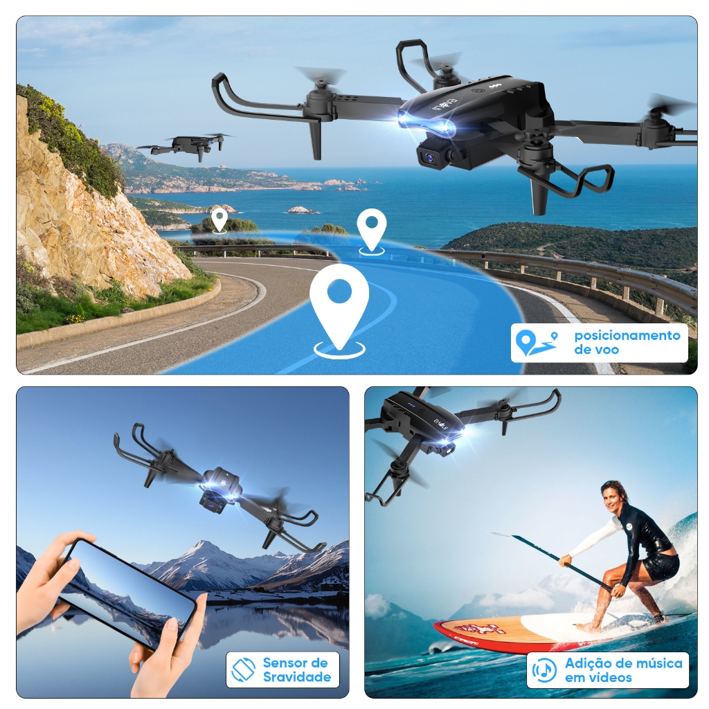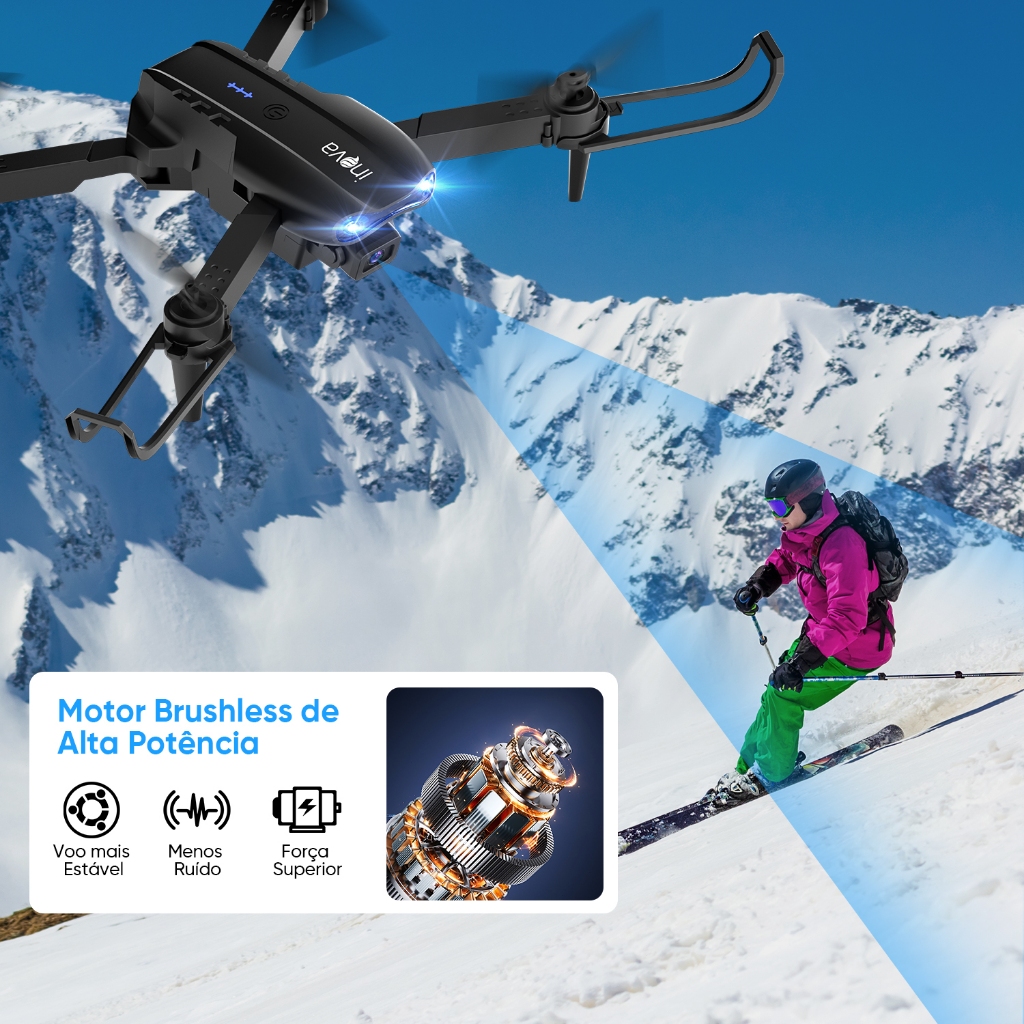 INOVA Drone Com Camera Drone Profissional 1080p Alta Distância Sensores Anti Obstáculo Drone dobrável HD e 2 baterias