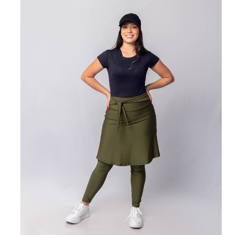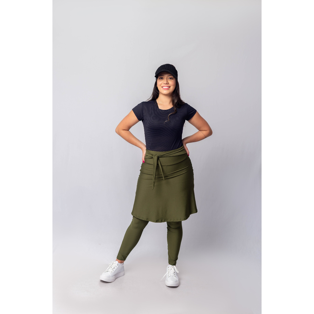 Calça Legging Com Saia Fitness Moda Evangélica Com Laço Bebbela