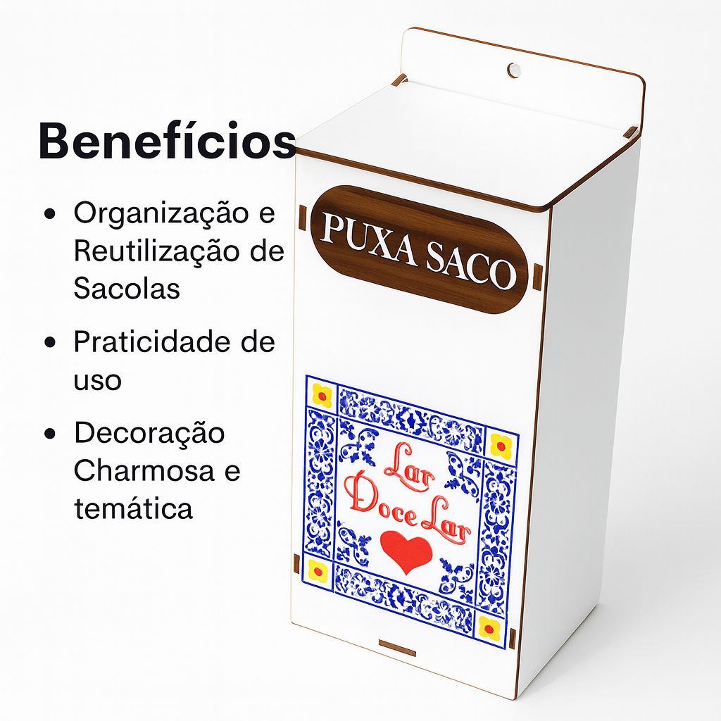 Puxa Saco Decorativo MDF 4mm Lar Doce Lar Cozinha Organização