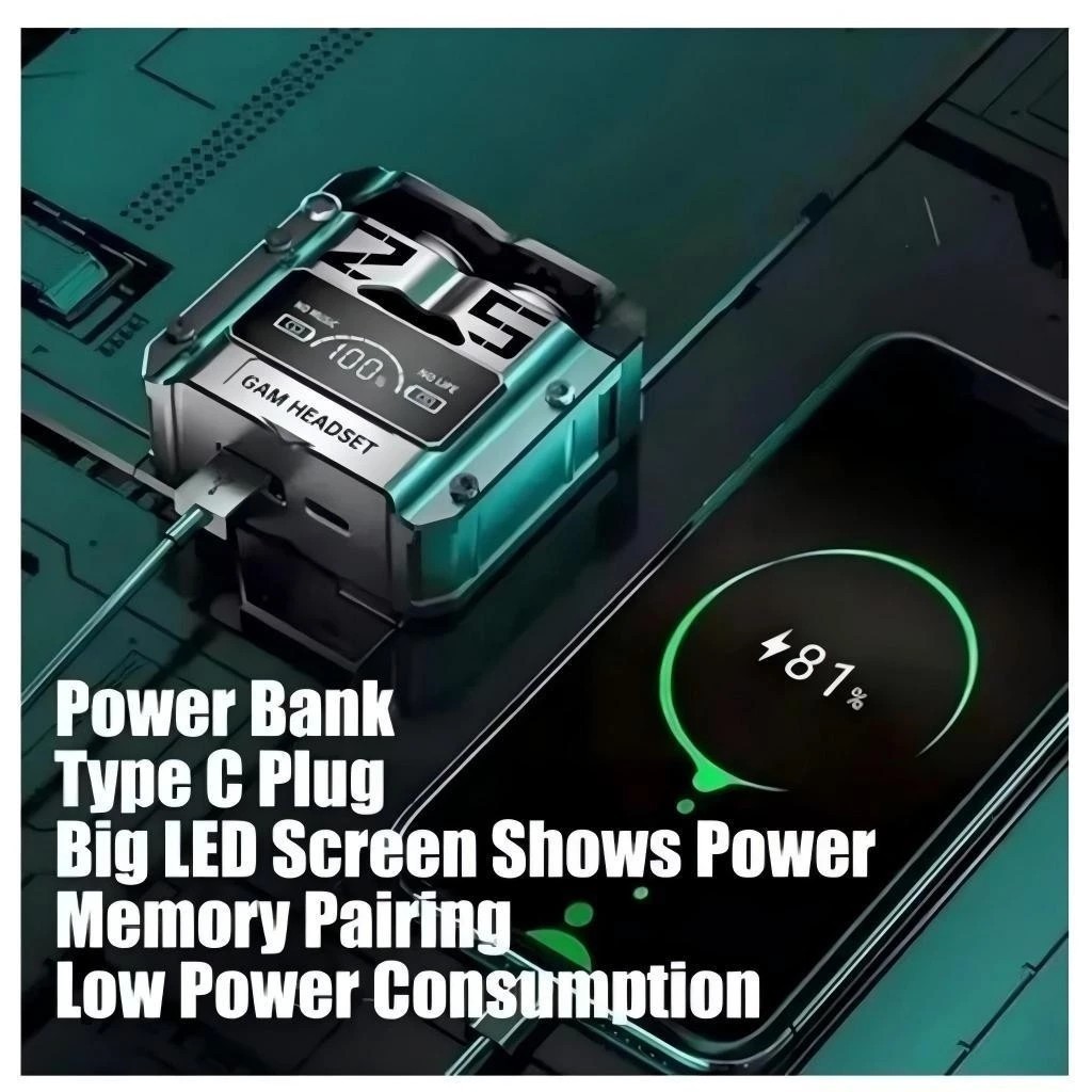 Fone De Ouvido Bluetooth Sem Fio 5.3 TWS M25 Resistente a água Stereo Sports Earbuds LED Microphone