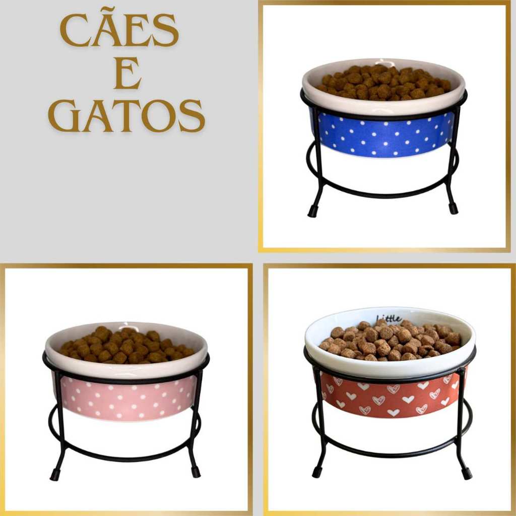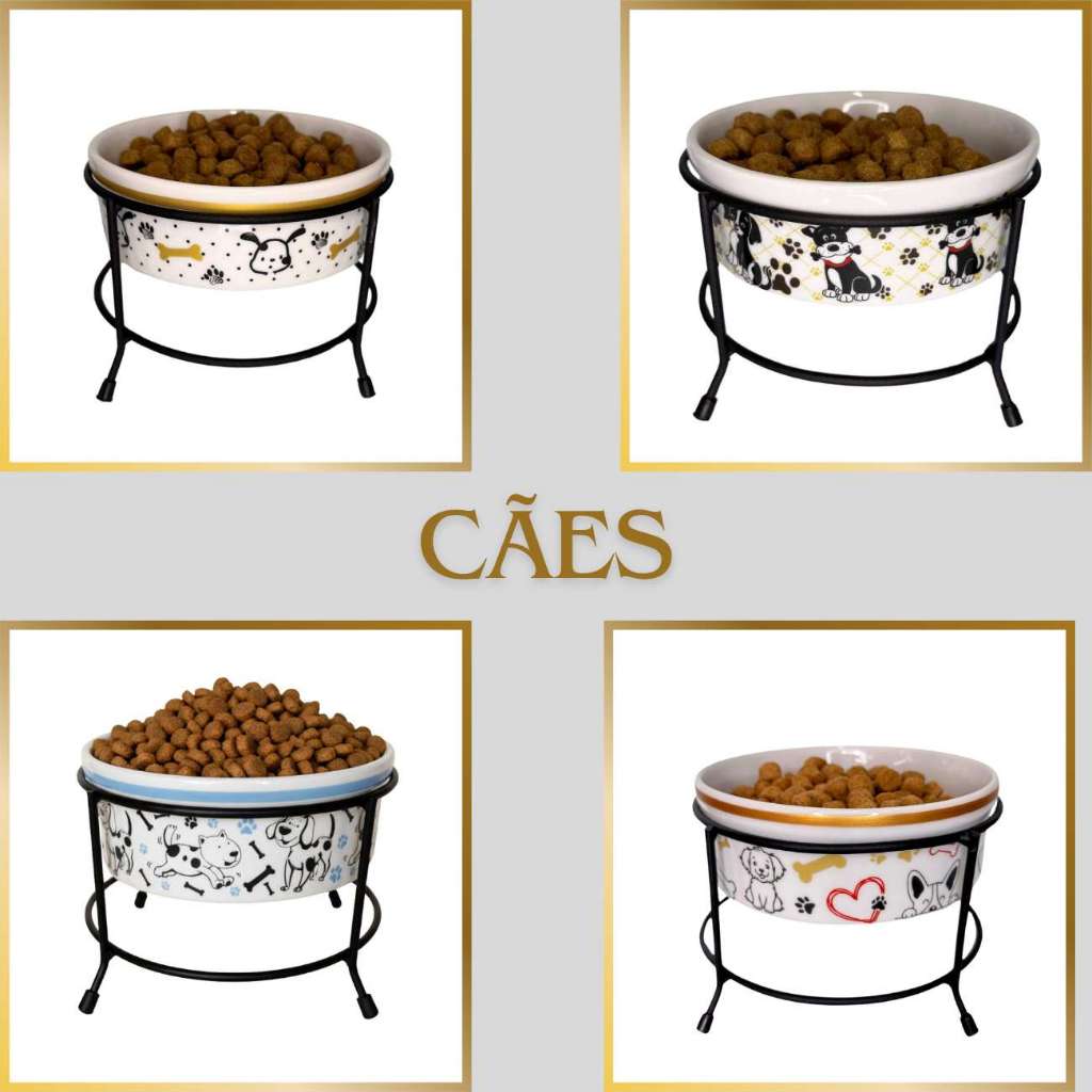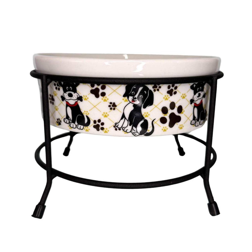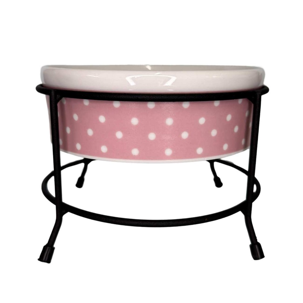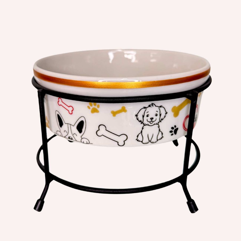 Comedouro Elevado para Cachorro e Gato 600ml Porcelana com Suporte de Ferro Antiderrapante Luxo Pet