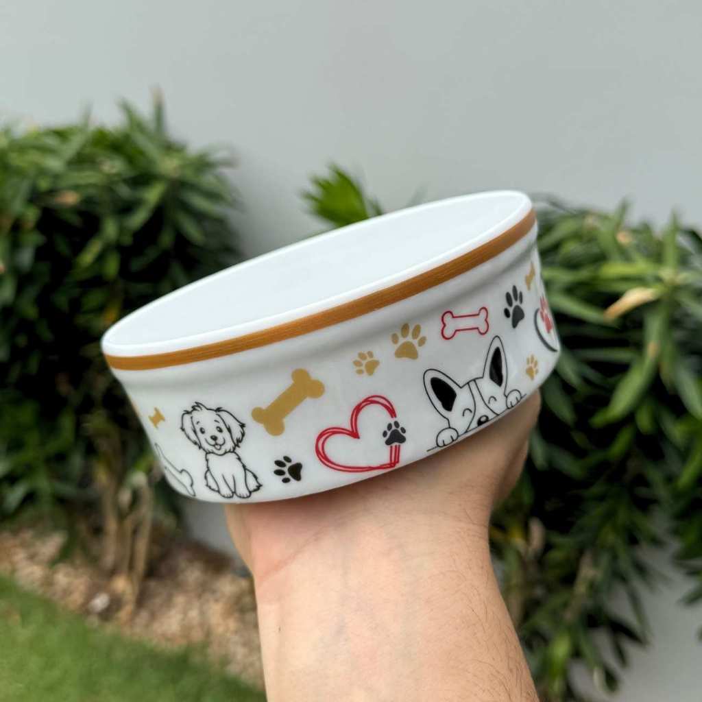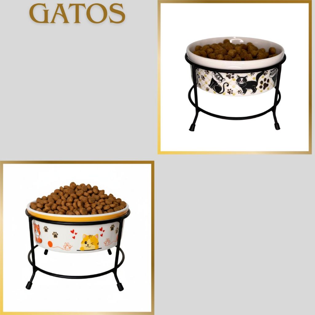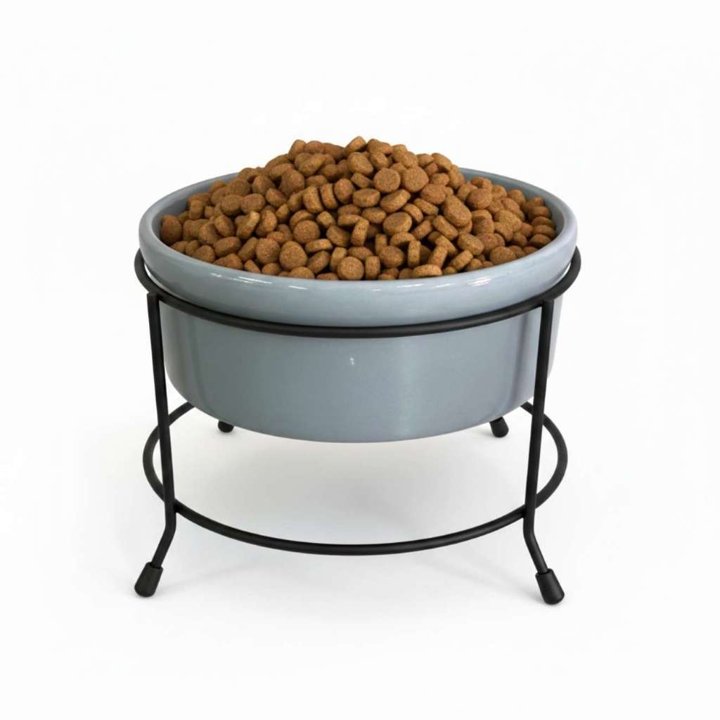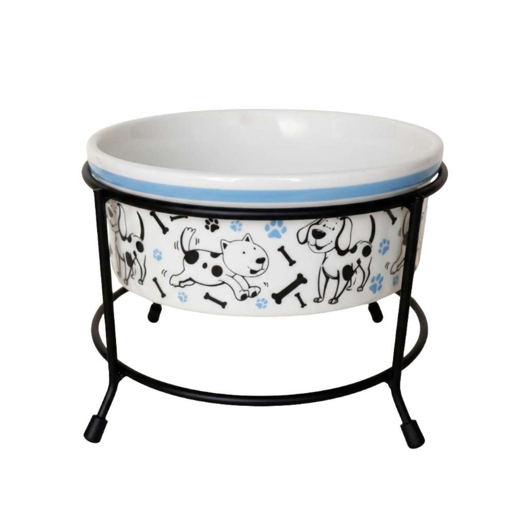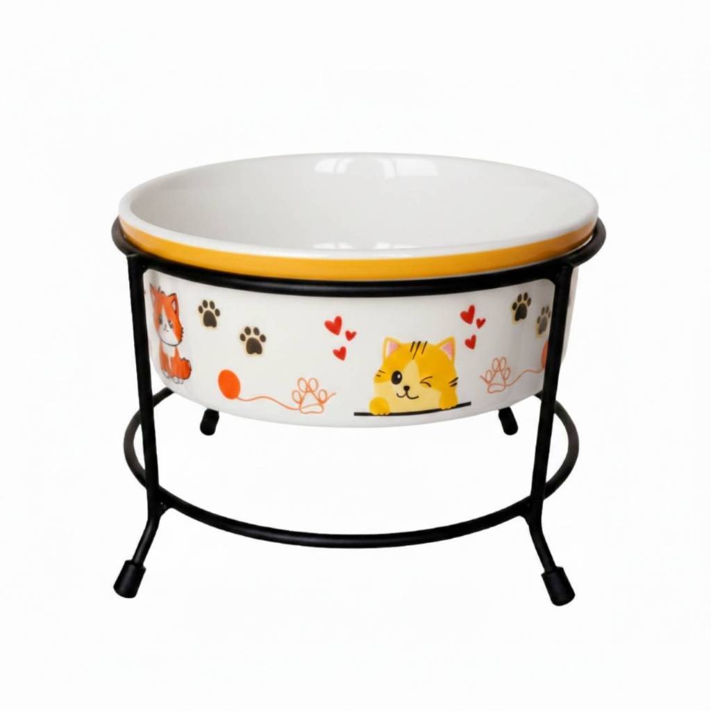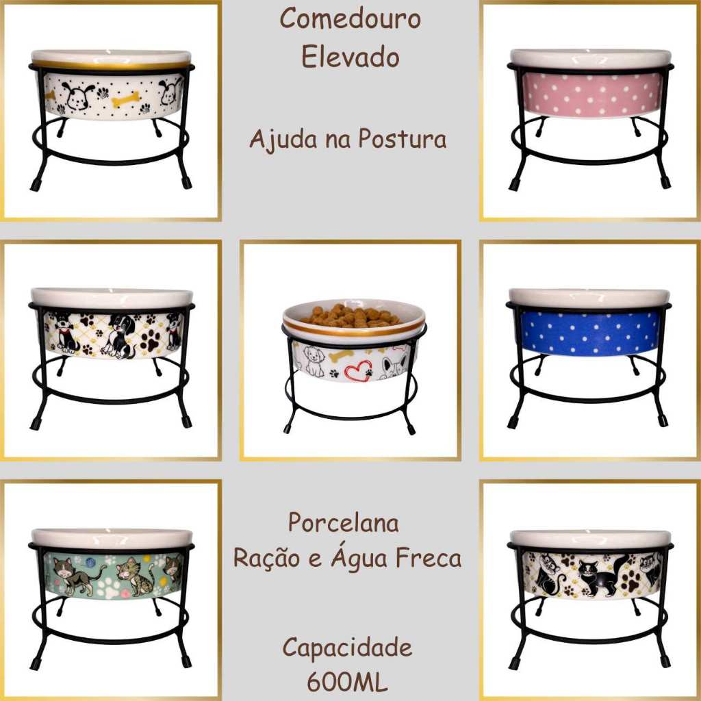 Comedouro Elevado para Cachorro e Gato 600ml Porcelana com Suporte de Ferro Antiderrapante Luxo Pet
