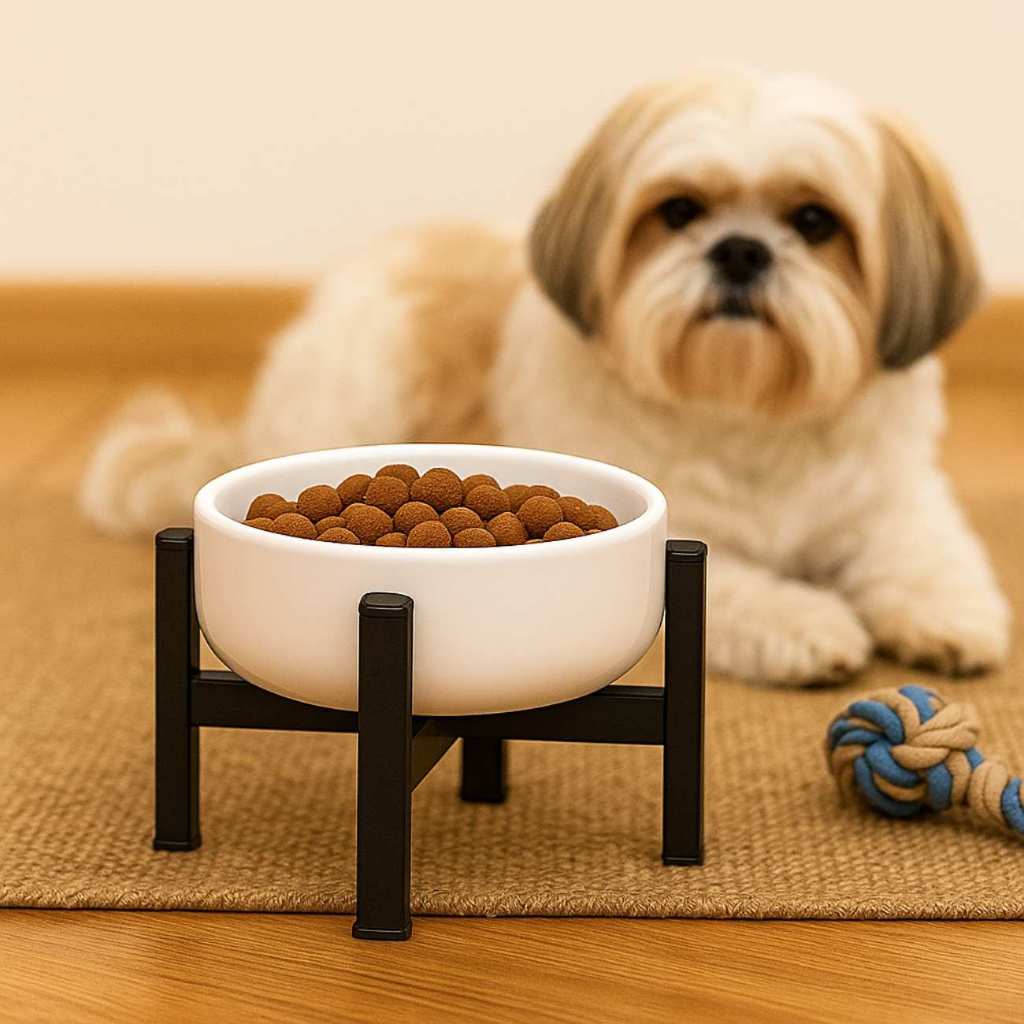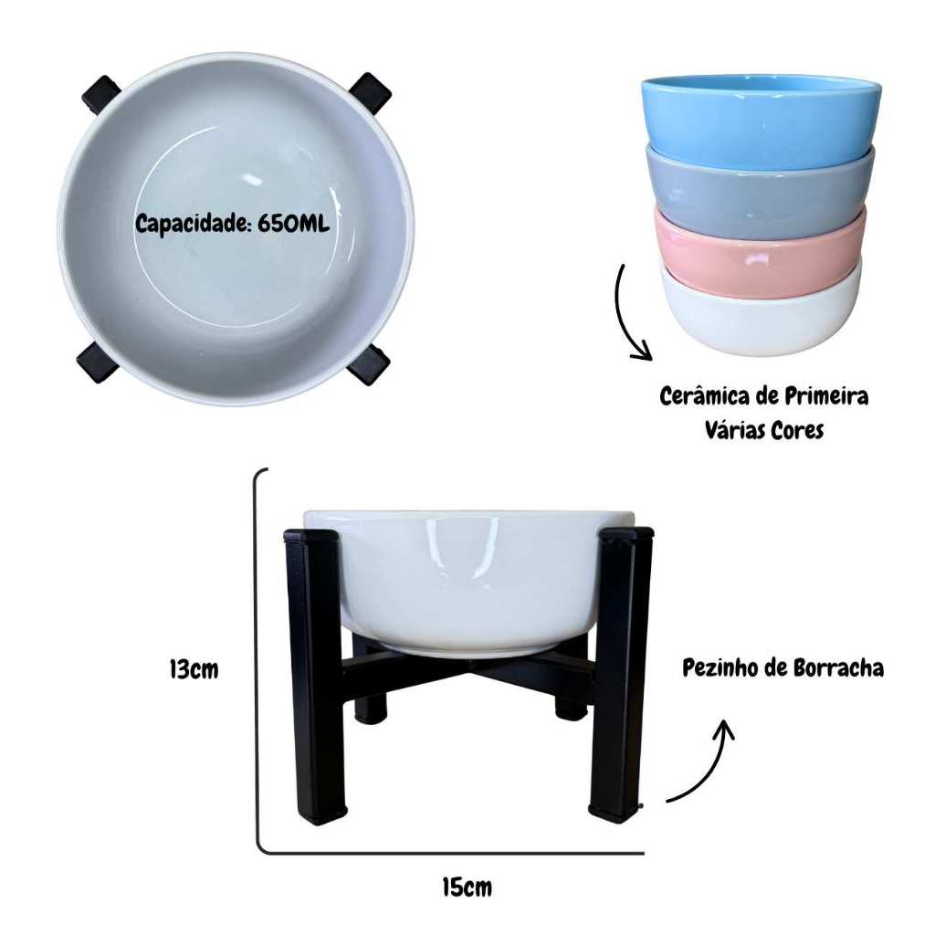 Comedouro Elevado em Cerâmica 650ml Design Moderno Antiderrapante Ideal para Cães e Gatos