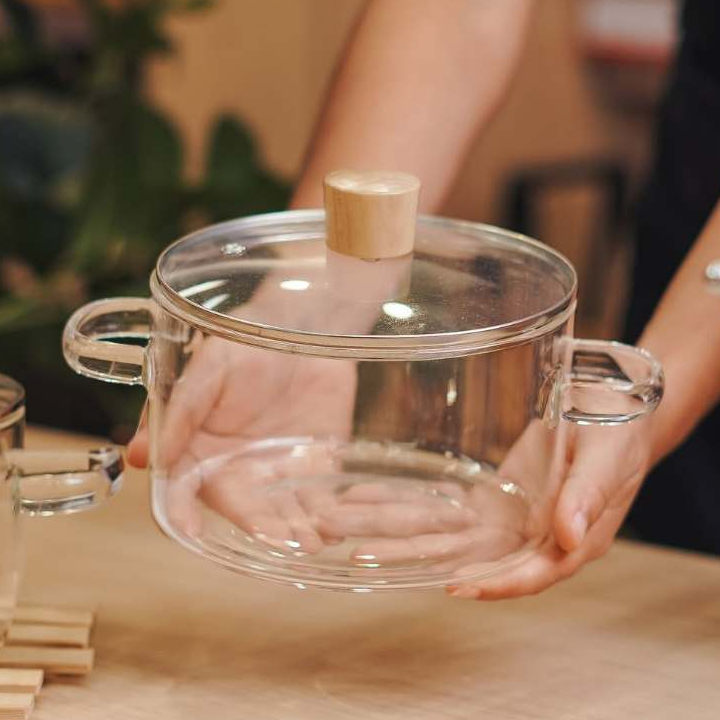 Caçarola Antiaderente Panela de Vidro com tampa 1,8L Resistente ao fogo