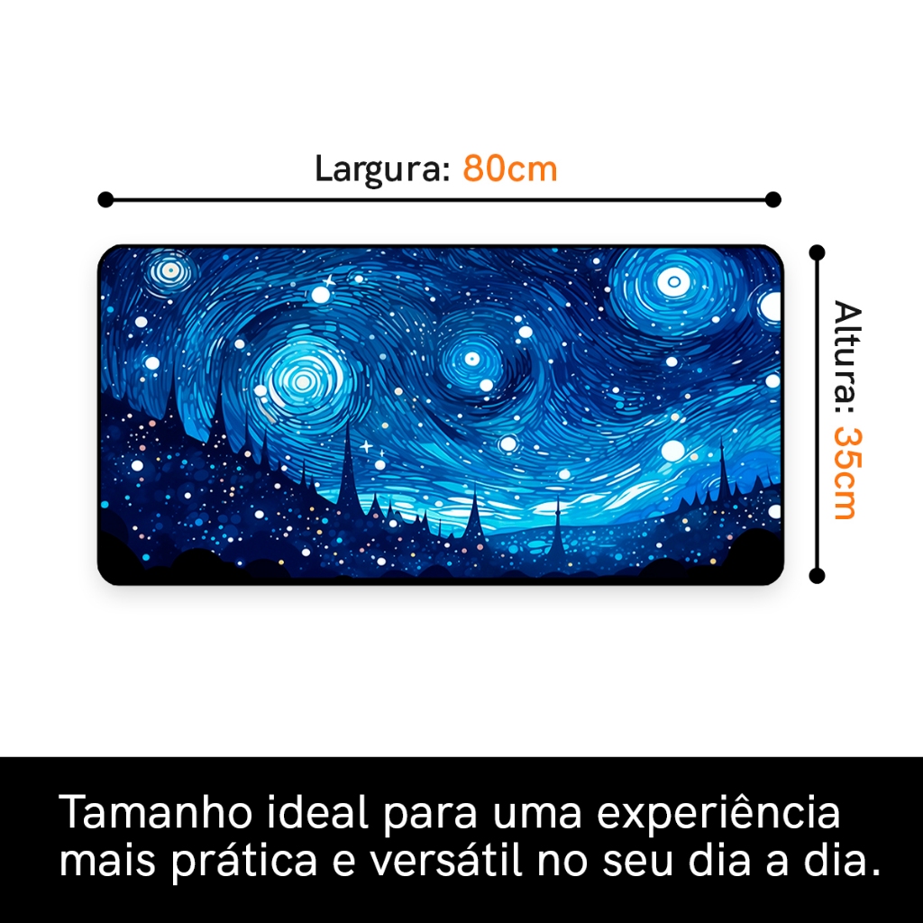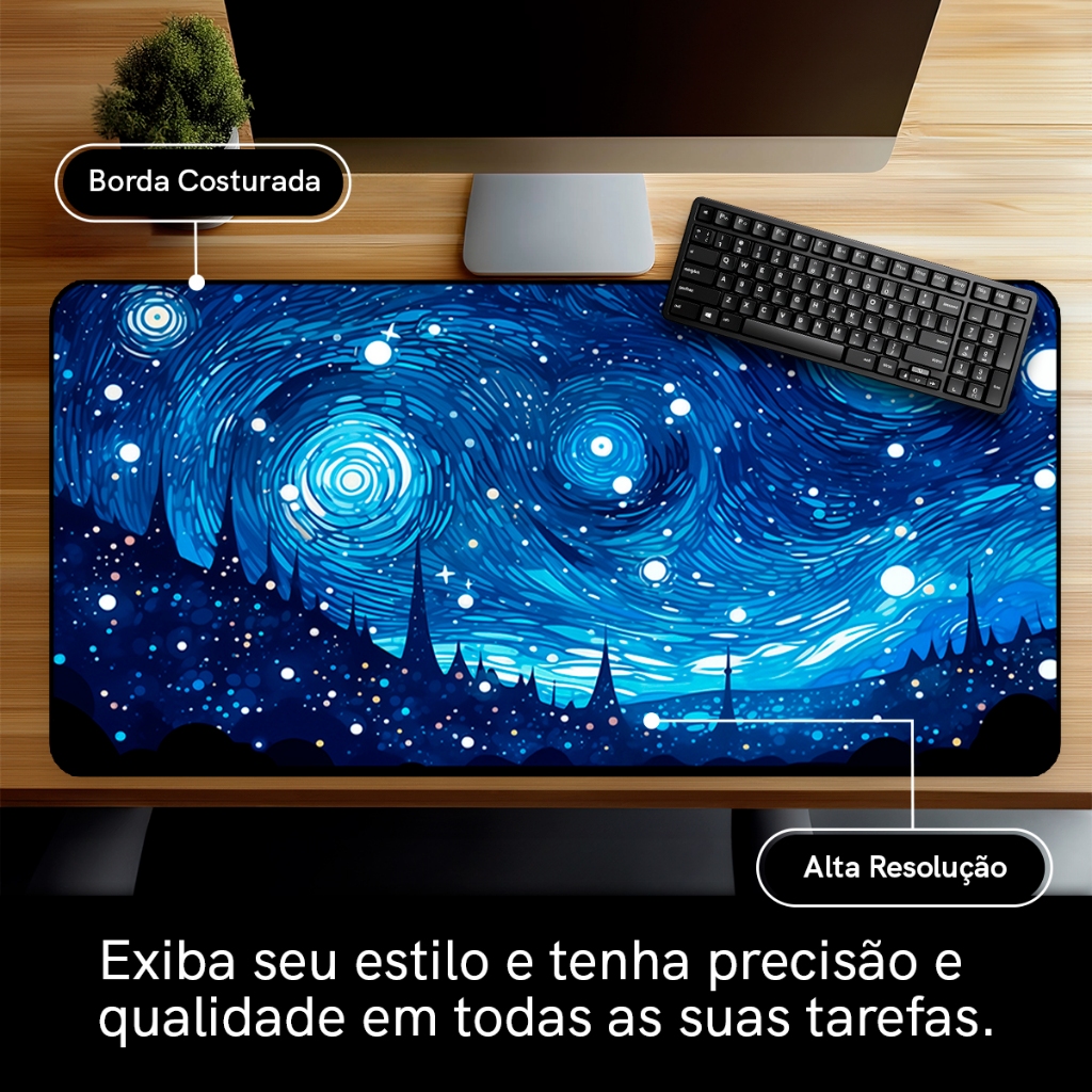 Mouse Pad Gamer Pintura Antiderrapante Grande 70x35 80x35 90x40 90x50 cm borda costurada