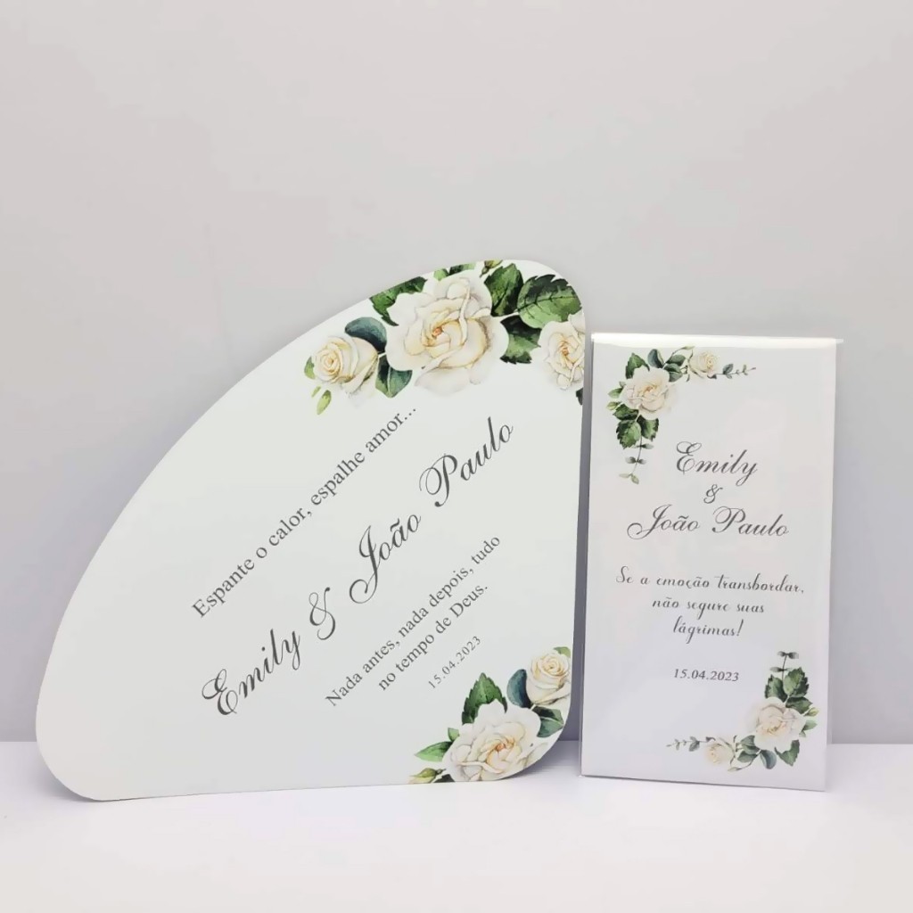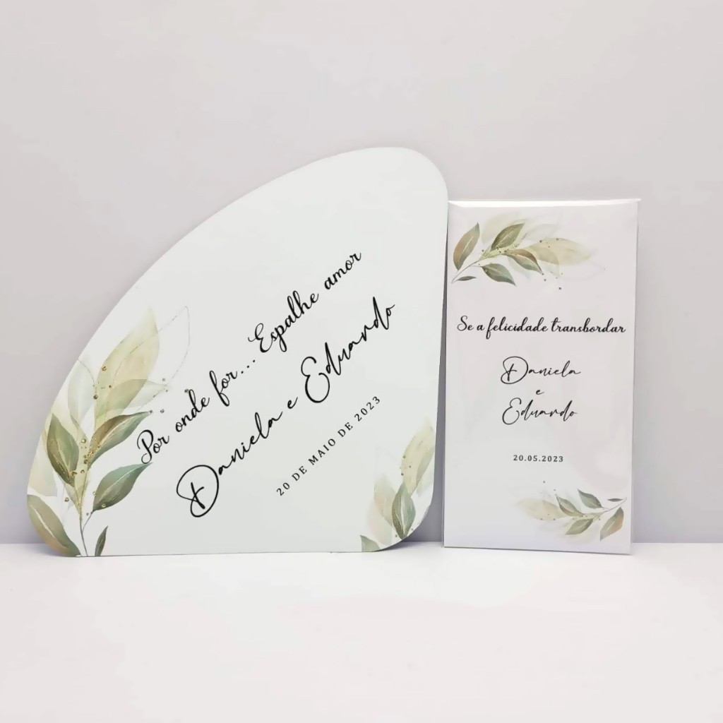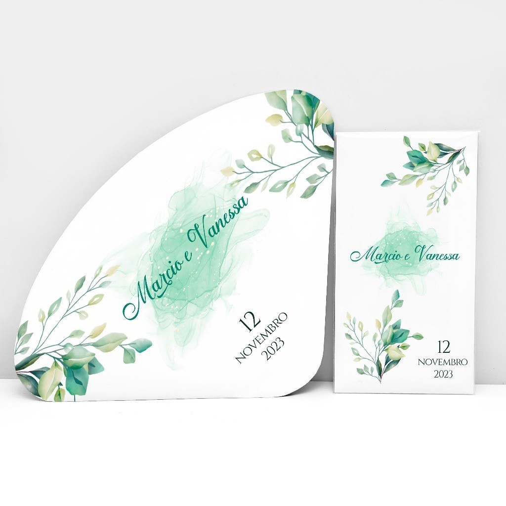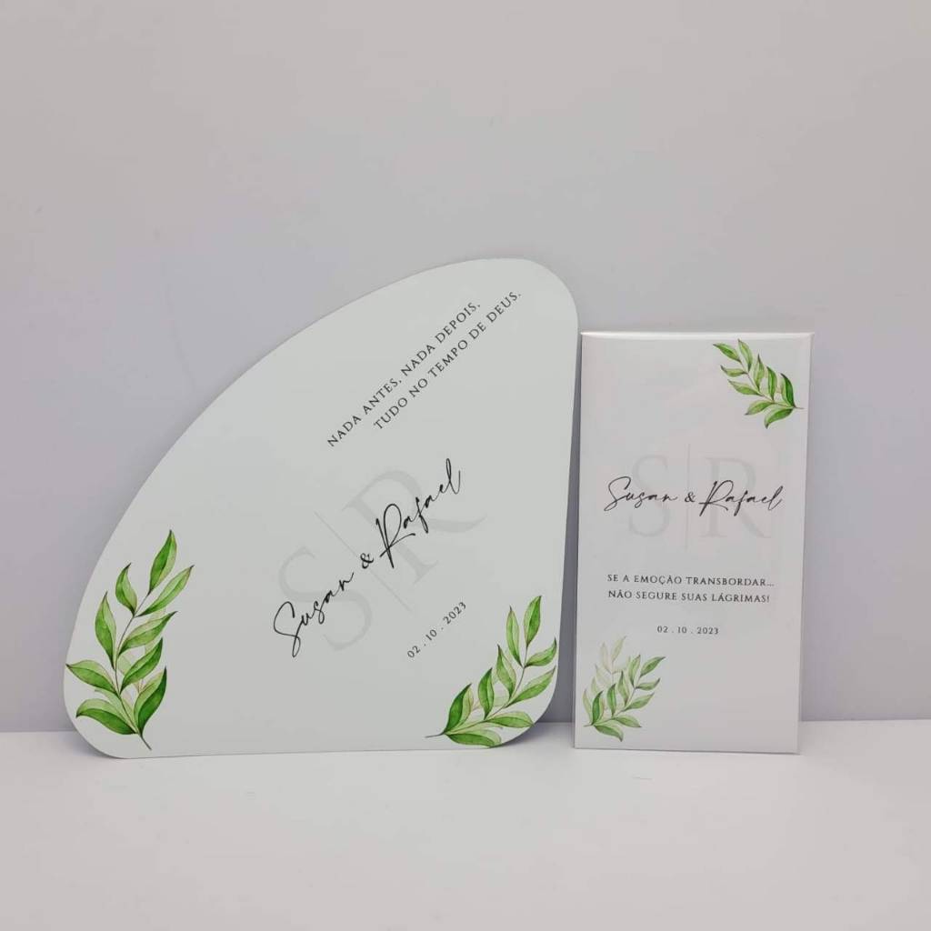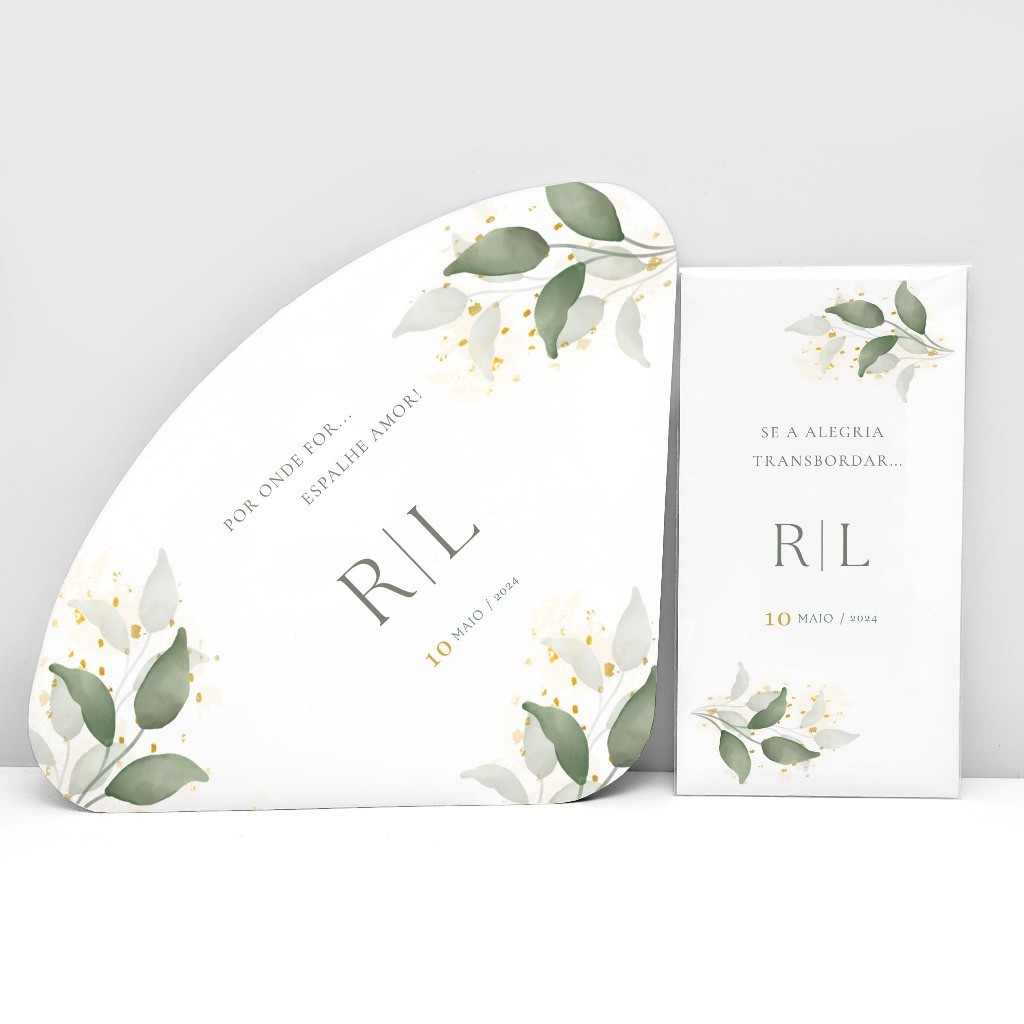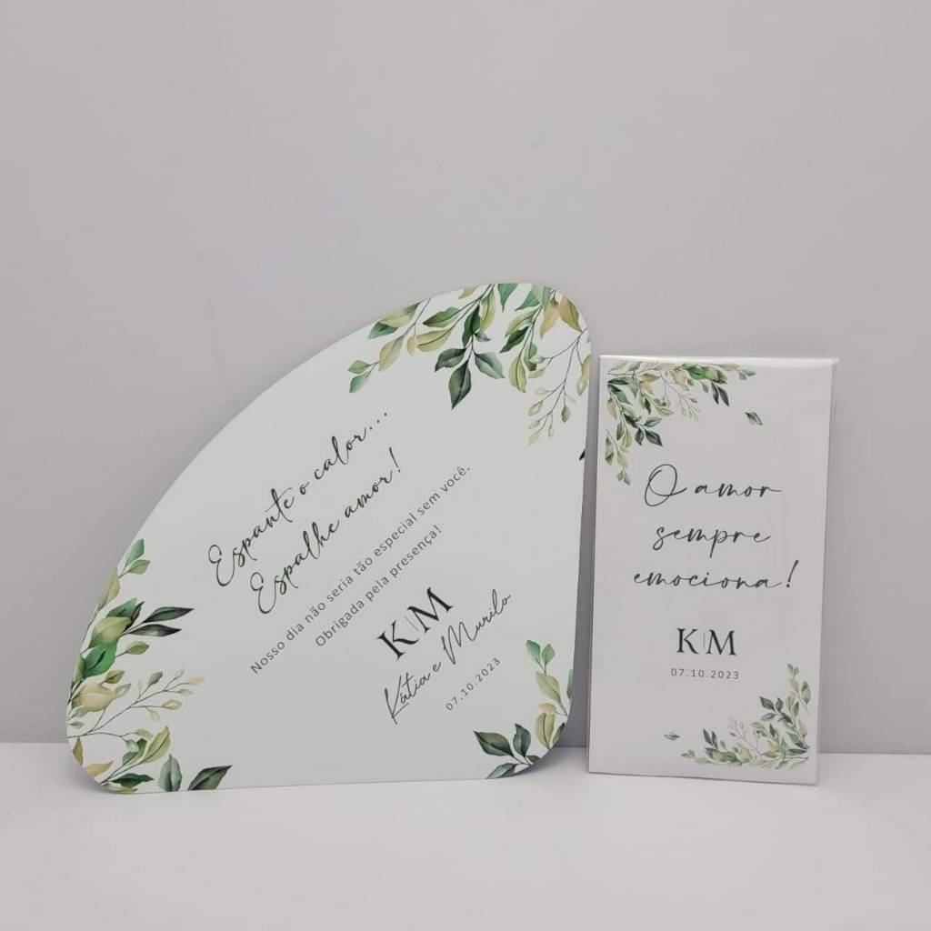 Kit Lágrimas de Alegria + Ventarolas Leques Personalizados Casamento Verde Folhagem Minimalista