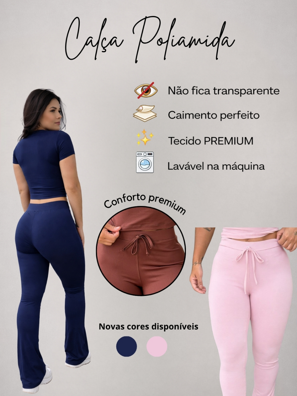 Calça Bailarina Feminina Confortável Tecido Premium Poliamida Moda Gringa Legging Flare Luxo