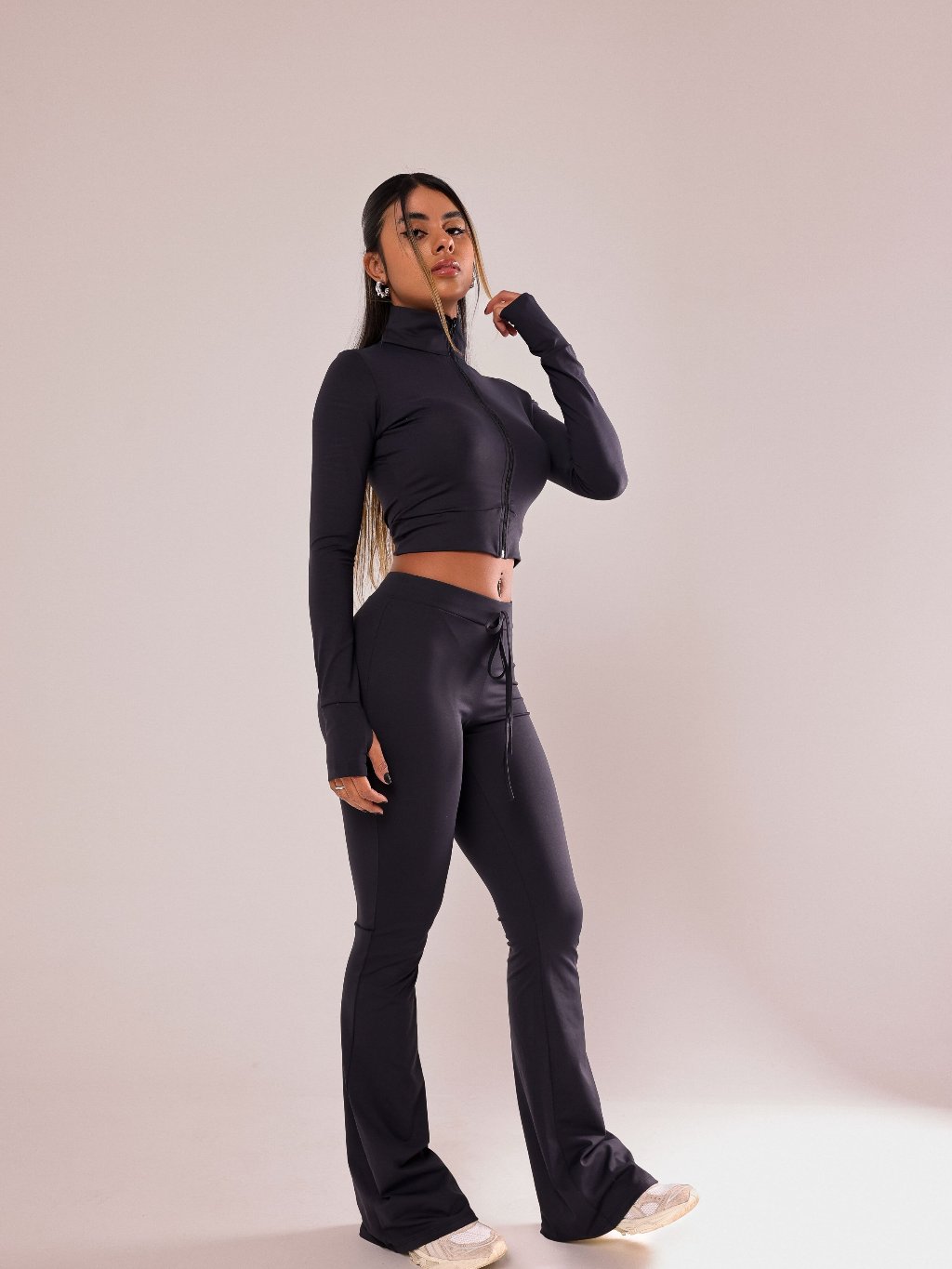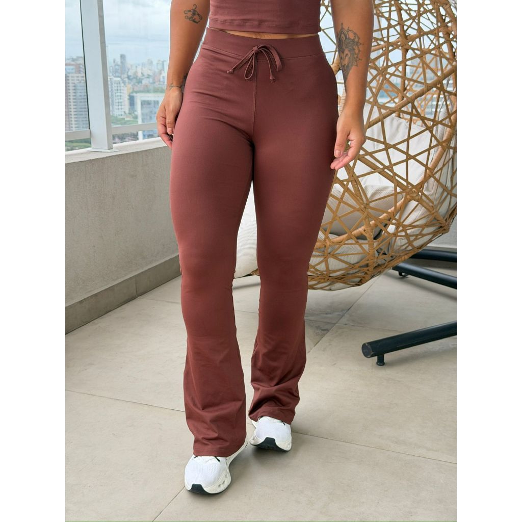 Calça Flare Feminina Confortável Luxo Moda Blogueira Gringa Poliamida Treino Inverno Preta Marrom Escuro